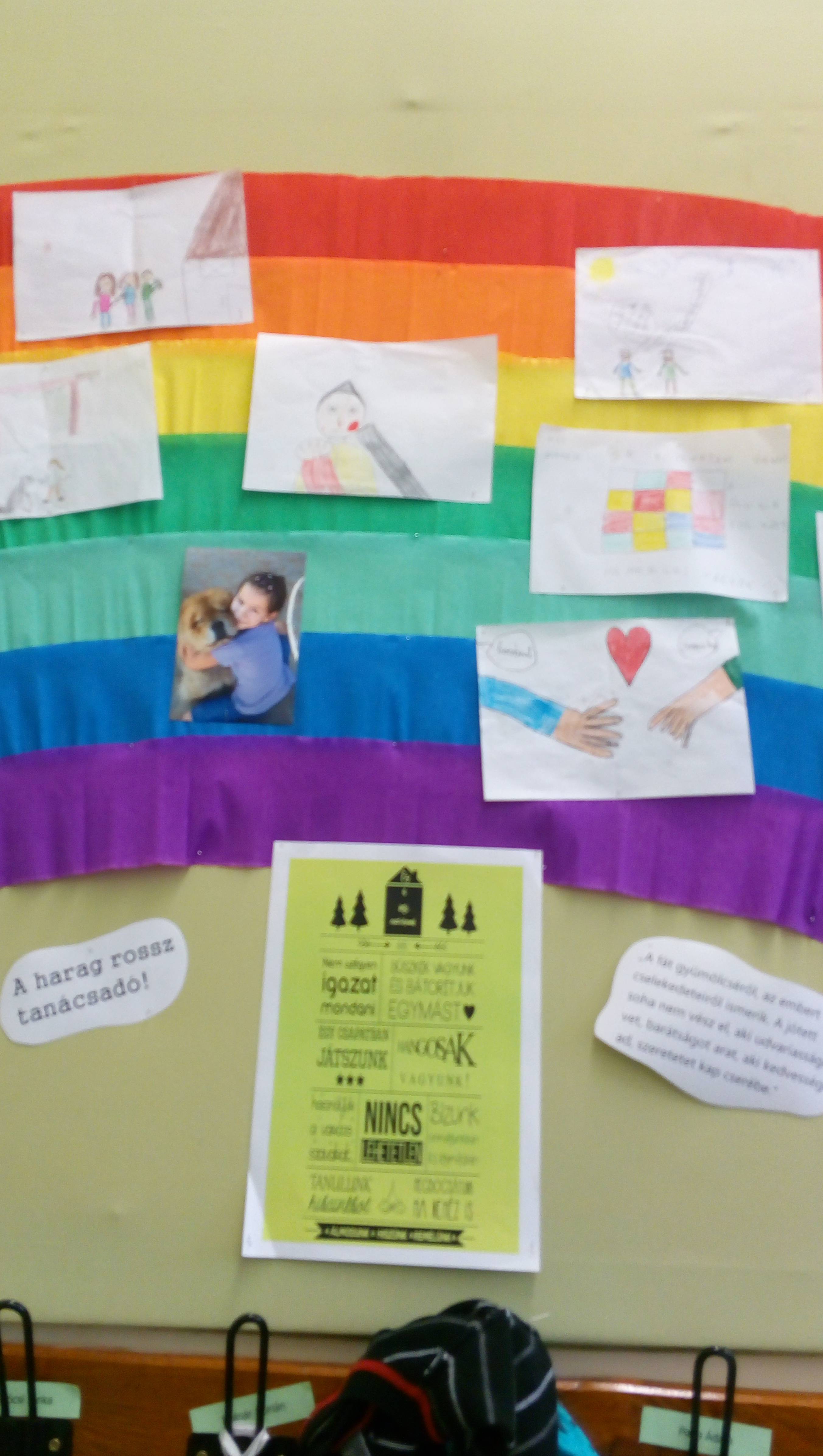 A mi szivárványunk rajzokkal, fényképekkel, motivációs üzenetekkel. Ez volt az első Boldogságóránk. Nagyon élveztük. Lesz folytatás!