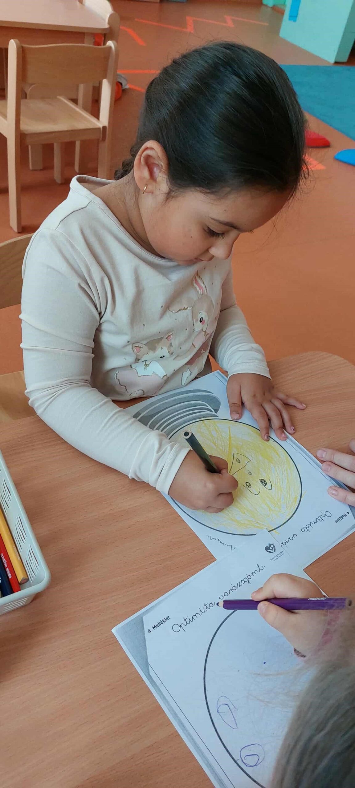 A gyerekek varázsgömböt díszítettek, amelybe azt rajzolták, ami örömet okoz, ami boldoggá teszi őket. A varázsgömb emlékeztette őket arra, hogy mindig van valami szép, amire jó visszagondolni, ami erőt adhat a nehezebb pillanatokban is. A gyerekek játékosan tanulták meg, hogy a pozitív gondolkodás, a remény és az öröm minden nap része lehet – csak meg kell látni a jót magunk körül.
