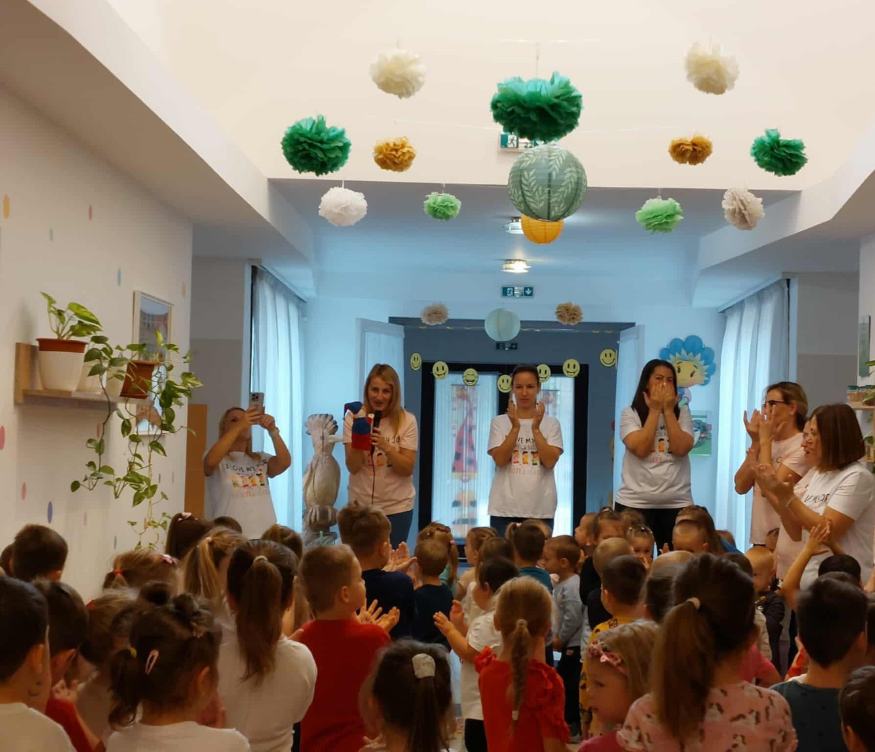 A szülők sem maradtak ki a vidámságból, „smile pontunkon” a gyermekek által rajzolt mosolygós arcot vihették haza, fotózkodásra pedig az „Egy mosoly” szelfi ponton volt lehetőségük.