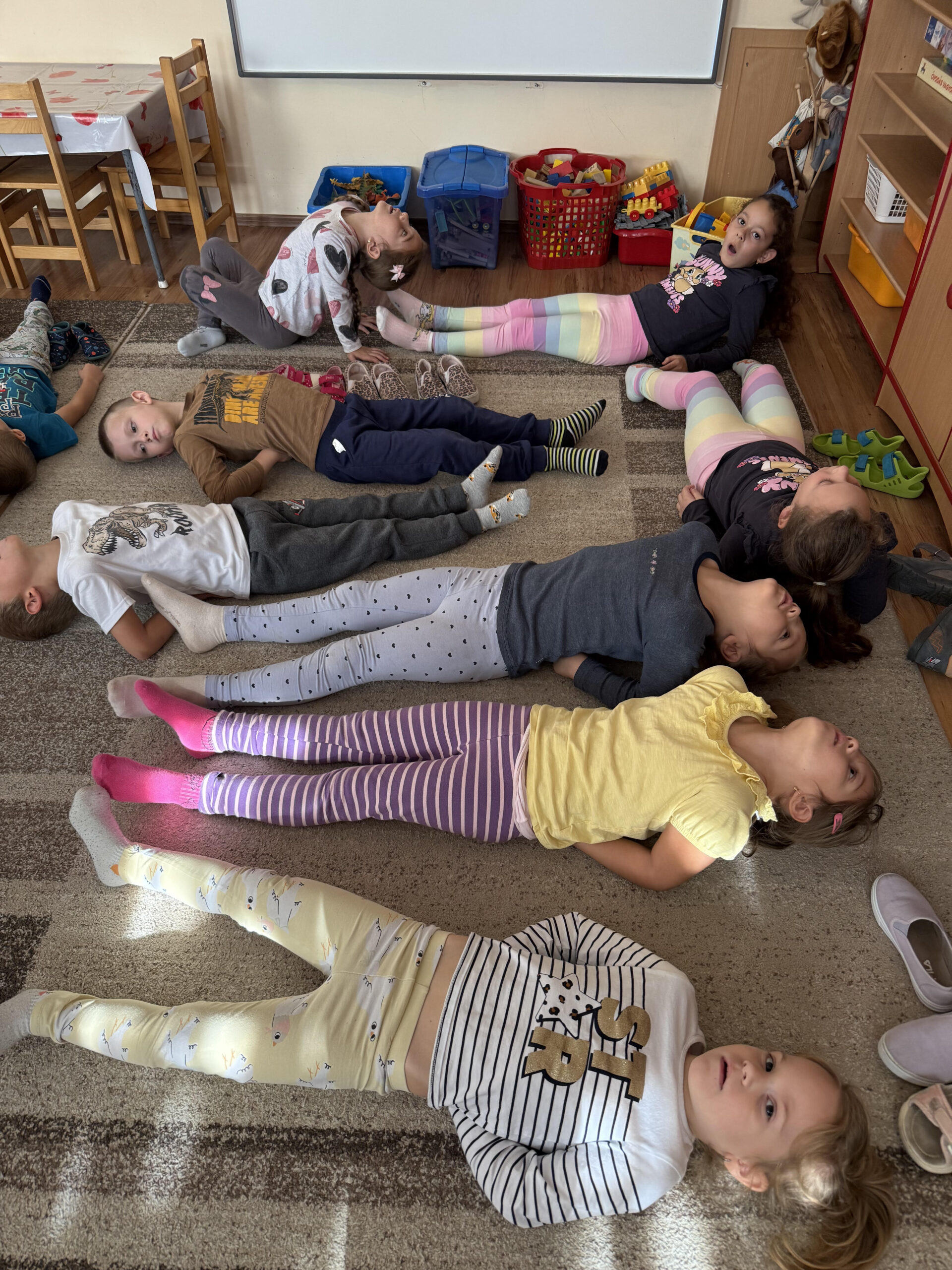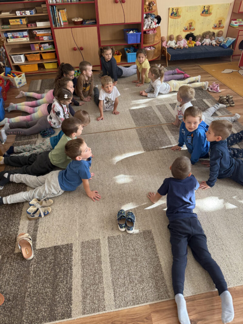 A tornateremben akadálypályán küzdöttünk le a nehézségeket, állatos mozgáskottával, majd a nap végén a gyerekek a „Az erdei békés utazás” relaxációs mesére lazíthattak, nyugodtan ellazítva testüket és lelküket.