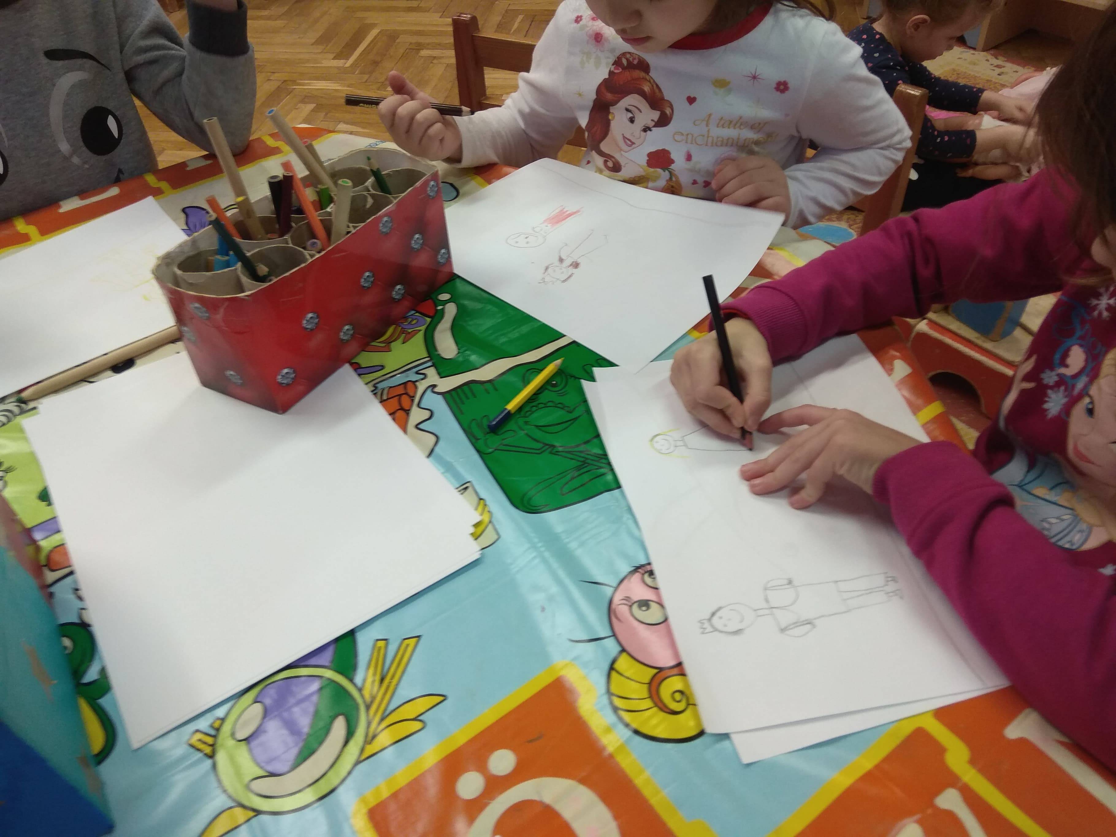 Legelőször is, a mese átdolgozásán ügyeskedtünk. Nehéz volt olyan mesét találnunk,ami nem sikeresen végződik. Legalább is óvodás korban nem nagyon dolgozunk fel sikertelenül végződő mesét. Most viszont a feladat az volt,hogy találjunk egy negatív szereplőt,aki valamiben hibázik,de amikor átírjuk a mesét ez jóra fordul,vagy a negatív szereplő jelleme változik meg pozitívan. Így találtunk rá a Kerek kő című mesére.