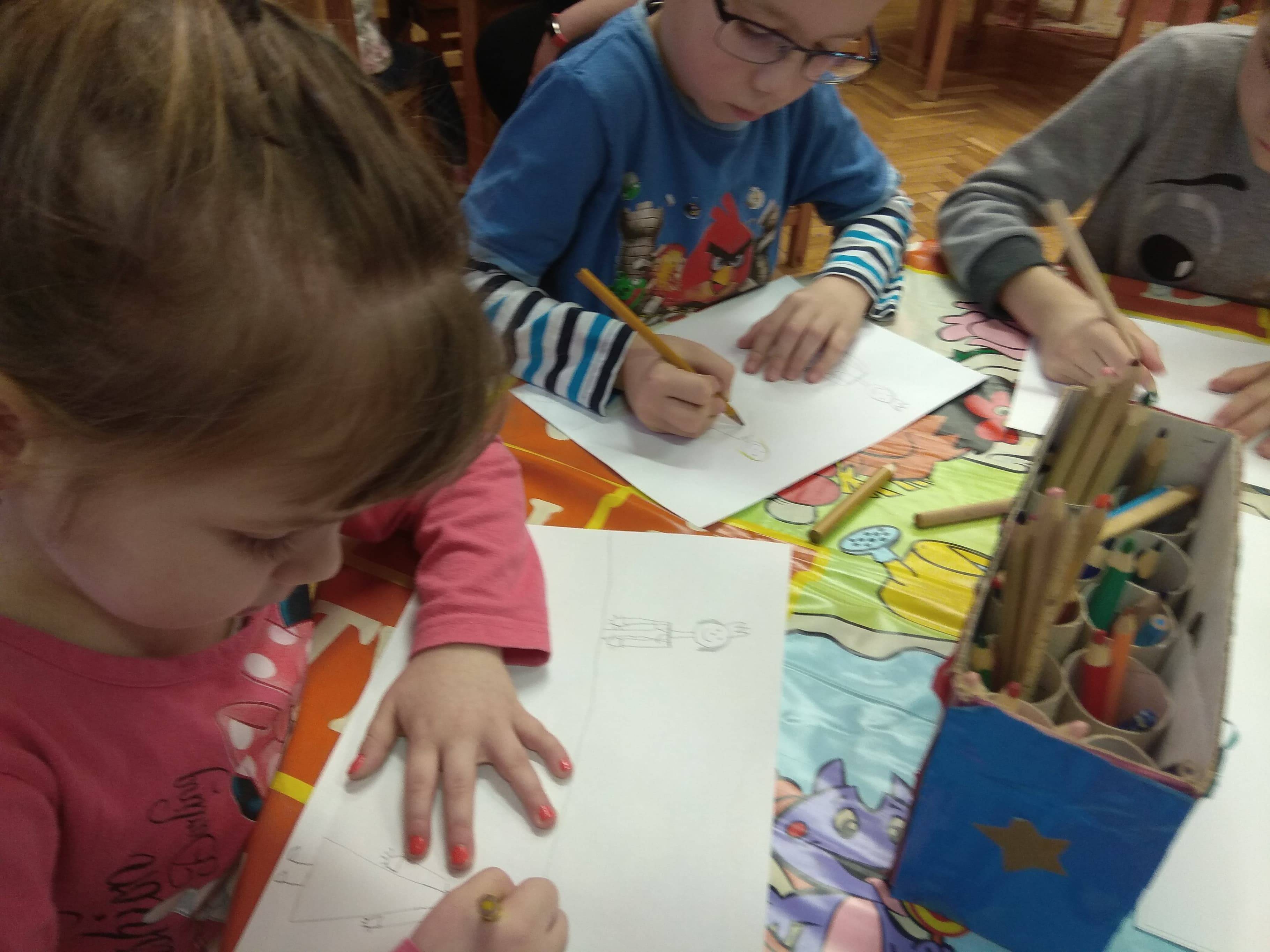 Ezen a héten kiválasztottunk olyan népmeséket, ahol a főhősnek meg kellett küzdeni valamiért. (Zöld Péter, Csóka lányok, Az ördög 3 arany hajszála, Mátyás király és az okos lány.) Kinek melyik mese volt szimpatikus azt rajzolta le,ebből összeállítottunk egy tablót. Mindenki valamelyik részt rajzolta le a meséből, így a végére a képek alapján, összeállt a kerek egész.