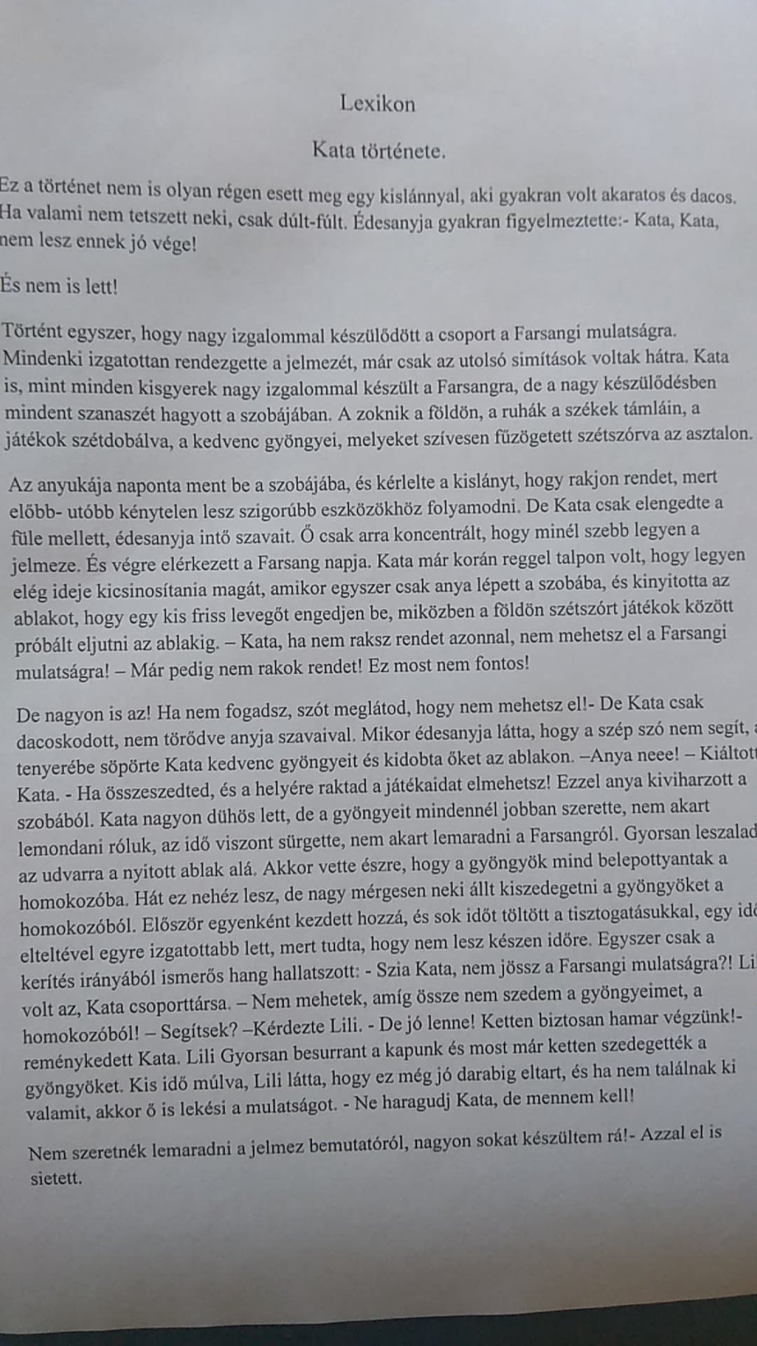 A megküzdési stratégiák volt a hónap feldolgozandó témája, ami bevallom,nagyon érdekes volt számomra is,mert nem is gondoltam,hogy minden gyermek életében történt már olyan élethelyzet,amelyben meg kellett, küzdenie valakivel,vagy valamiért. A beszélgetések során kiderült, hogy főleg a szüleiknek való megfelelés az ami változásra készteti a gyermekeket. vagy a barátaikkal való ideiglenes rossz viszony visszafordítása érdekében. Nem igényelt sok magyarázatot a téma,szinte azonnal megértették, hogy mire vagyok kíváncsi. Kerestünk olyan meséket, mesehősöket, az ismereteikből,akiknek valamiért meg kell küzdeni az életben. Ilyen a legtöbb tündérmese, ahol a legkisebb királyfi, vagy fiú megküzd a rá váró feladatokkal és végül elnyeri méltó jutalmát. (Pl.: A kis hableány,akinek a hangja nélkül kell elbűvölnie a herceget, különben örökre elveszíti a hangját és az életét is. Csipkerózsika, aki miután megszúrja az ujját 100 éves mély álomba merül, és a királyfiak százával próbálják megtalálni,de nem tudnak áthatolni a szúrós bokrokon. stb. Aztán magunk is írtunk egy történetet Katáról,aki tetteinek eddig még soha nem volt következménye. A farsangi bálra viszont szeretett volna elmenni,de az édesanyja egy jól irányzott csellel móresre tanítja a kislányt.