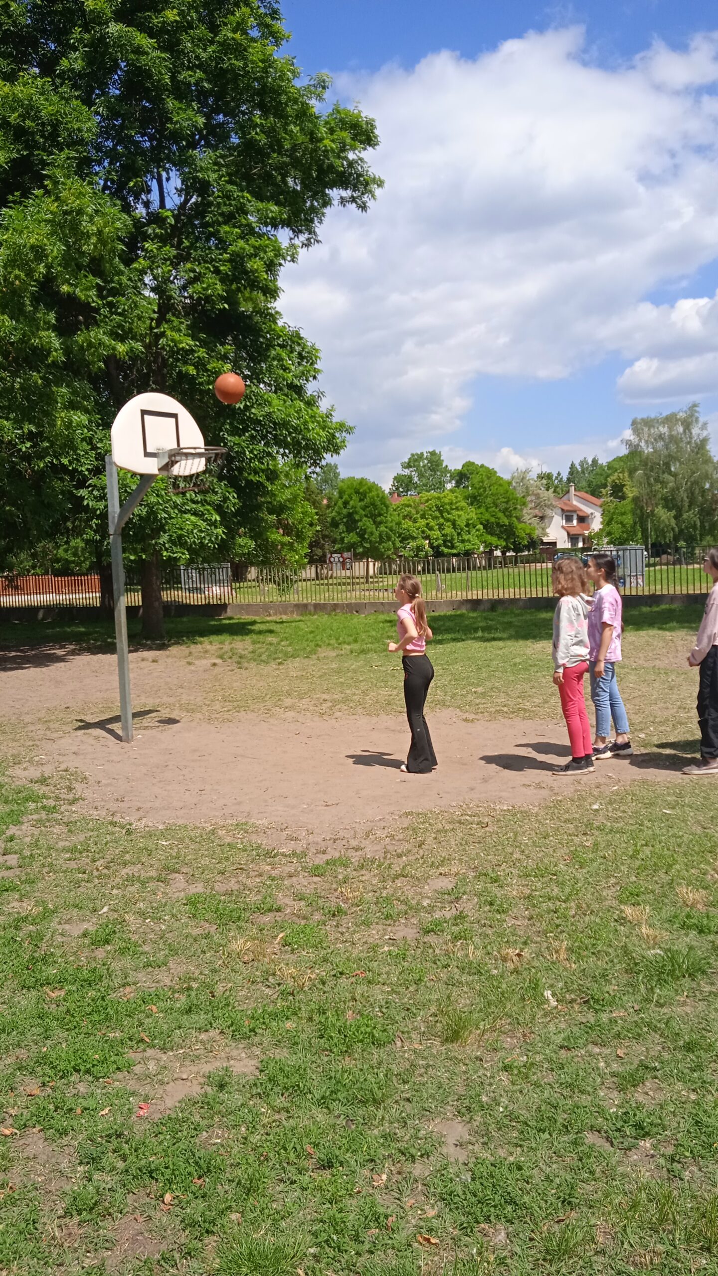 Iskolánk nagy udvara kiváló lehetőséget ad arra,hogy a szabadban is mozoghassanak a gyerekek.Van focipálya,kosárpálya,mászókák,hinta,mérleghinta ,aszfaltra festett ugróiskola,homokos ugrógödör és hatalmas füves területek.A képek az iskola udvarán készültek.