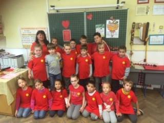 Ez a kép az 1. téma feldolgozásakor készült. Pirosba bújtunk, s ezzel szerettük volna jelezni, ebben a tanévben is csatlakozunk a boldogságprogramhoz. Íme a 2. b-s boldog osztályunk, a Tunderek2b.