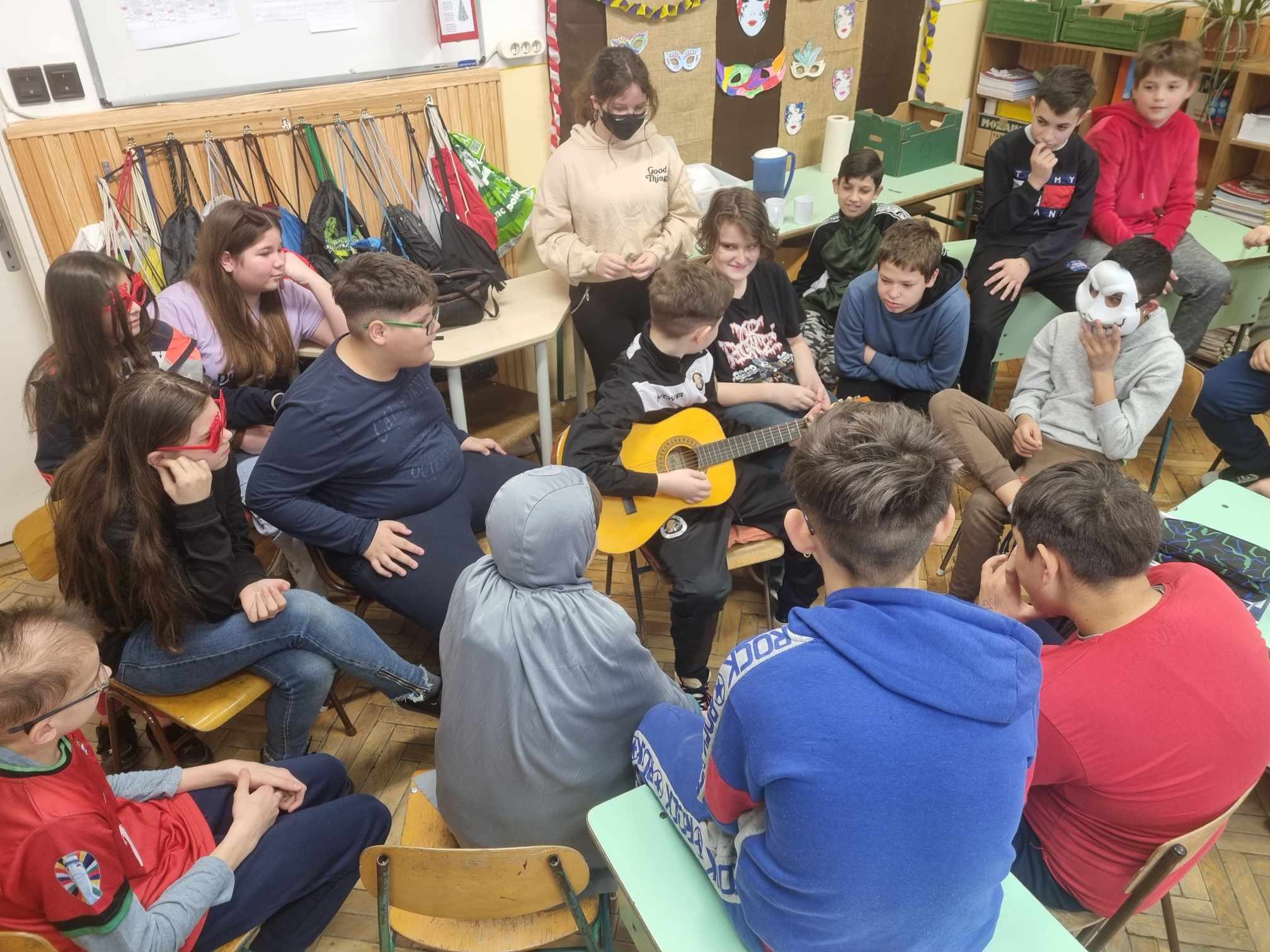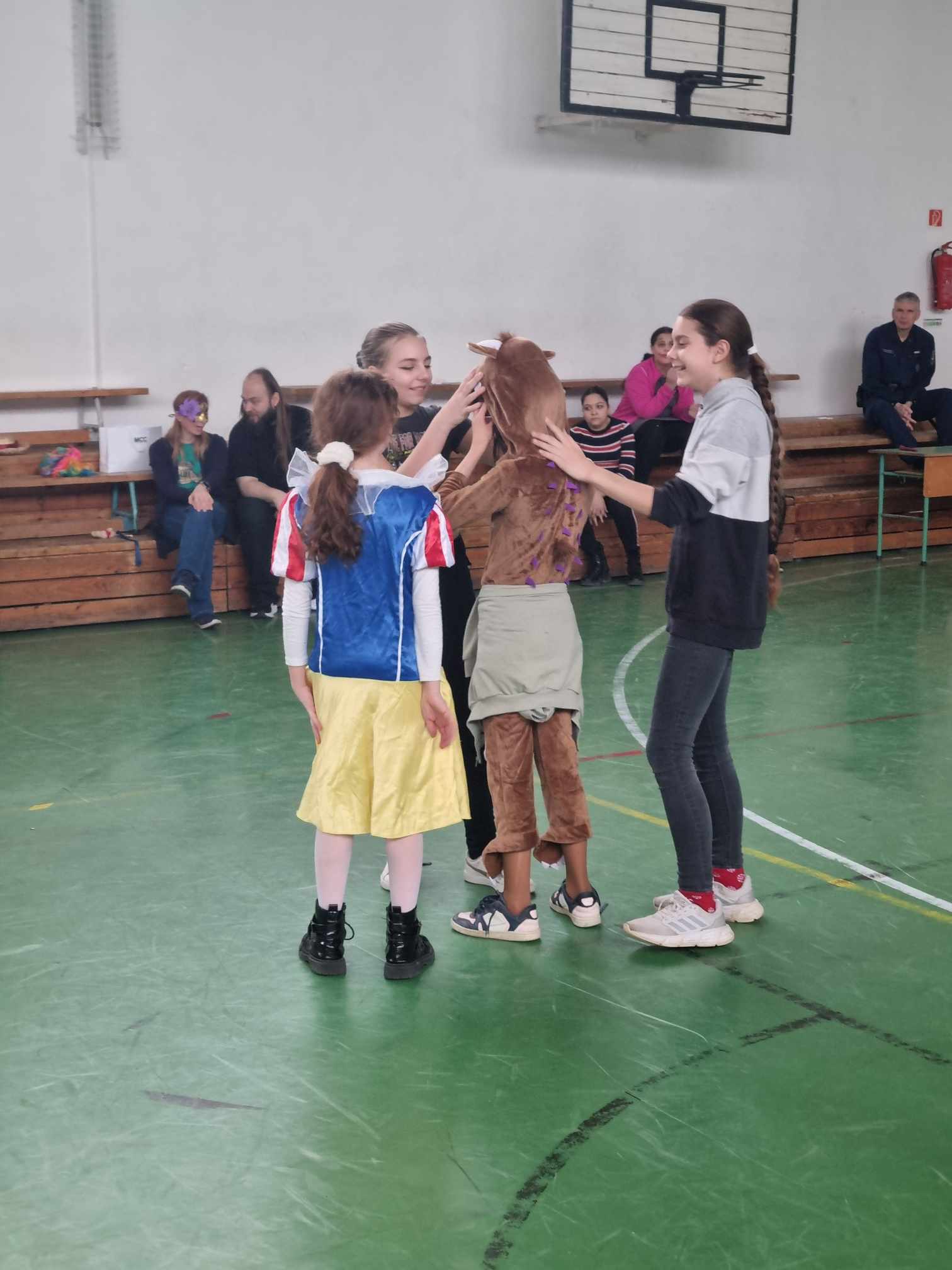 Farsangon beöltözve vártuk tanórára a pedagógusokat. Ők is megleptek minket, mert beöltöztek. Tornateremben egy közös játékos programmal vártak minket délután. Este pedig diszkóval záródott a nap, ahol jót buliztunk együtt.