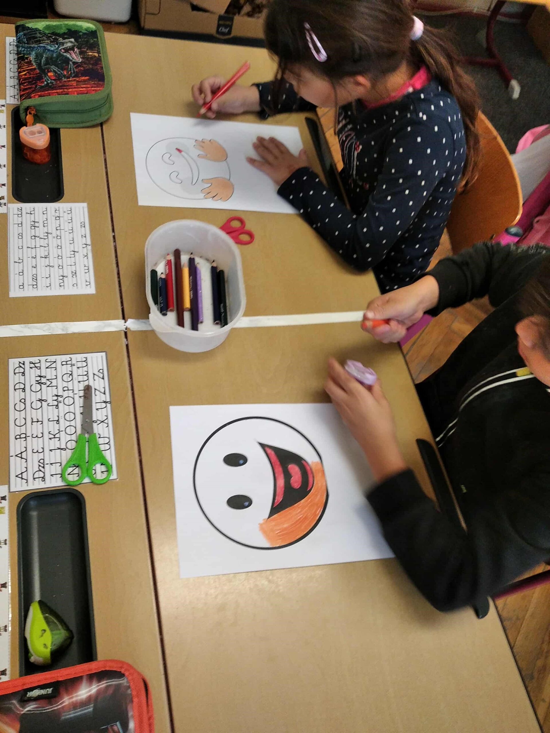 Játékos feladatként pozitív érzelmeket kifejező emojikból tablót készítettünk, ami segítette a gyerekeket abban, hogy felismerjék és kifejezzék érzéseiket. Ezt követően közösen fogalmaztunk meg optimista mondatokat a mindennapi élethelyzetekhez kapcsolódva. A tanulók megértették, hogy a nehézségek nemcsak akadályt, hanem új lehetőséget is jelenthetnek és az előremutató szemlélet sokszor elvezet a megoldáshoz.