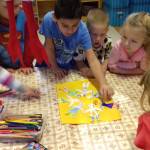Nagyon élvezték a gyerekek az ujjlenyomatok gyűjtését, majd azok figurákká való kiegészítését.