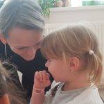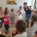 A gyermekekkel egy átmozgató kis torna után képzeletbeli faleveleket gyűjtöttünk képzeletbeli kis kosárkába.