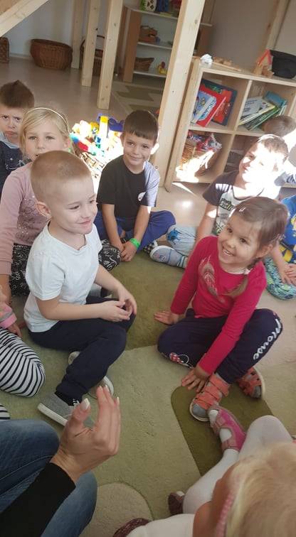 Az add tovább a falevelet játék további jó hangulatot teremtett.A hálafa története után megjelentek a szereplők, akiknek mozdulatait utánoztuk. A gyermekek szívesen mondtak történeteket a háláról, a boldogságról. Jól érezték magukat, amelyet meg is fogalmaztak: