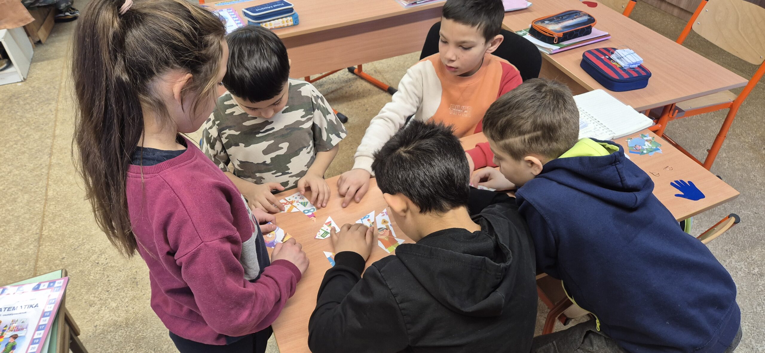 Az erősségek közül a perspektívával ismerkedtünk, egy farsangi képet vagdostam össze nekik, amit ki kellett rakniuk, ezzel a rész-egész viszonyt mélyítettük el.