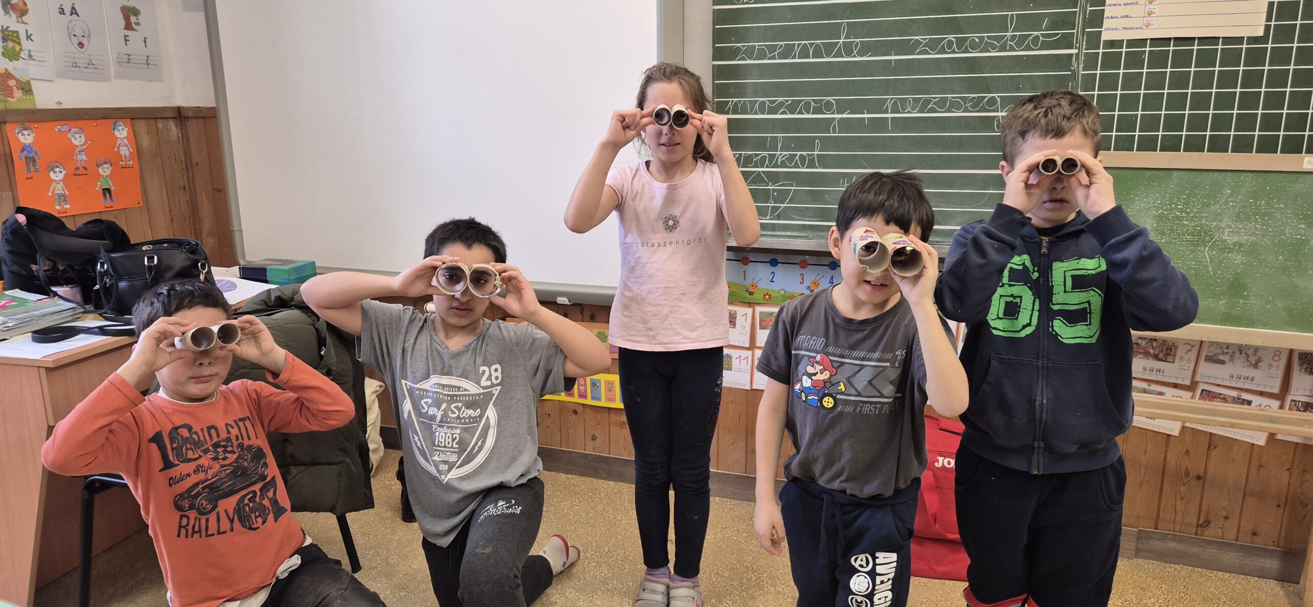 Kreatív foglalkozásnak szintén az erősségek gyakorlásából választottam a Távcsövön át gyakorlatot. 3 különböző méretű távcsövet készítettünk el papír hengerekből, amiket matricákkal kidíszítettek, majd megbeszéltük, melyiken hogyan látják a világot, a körülöttük lévő környezetet.