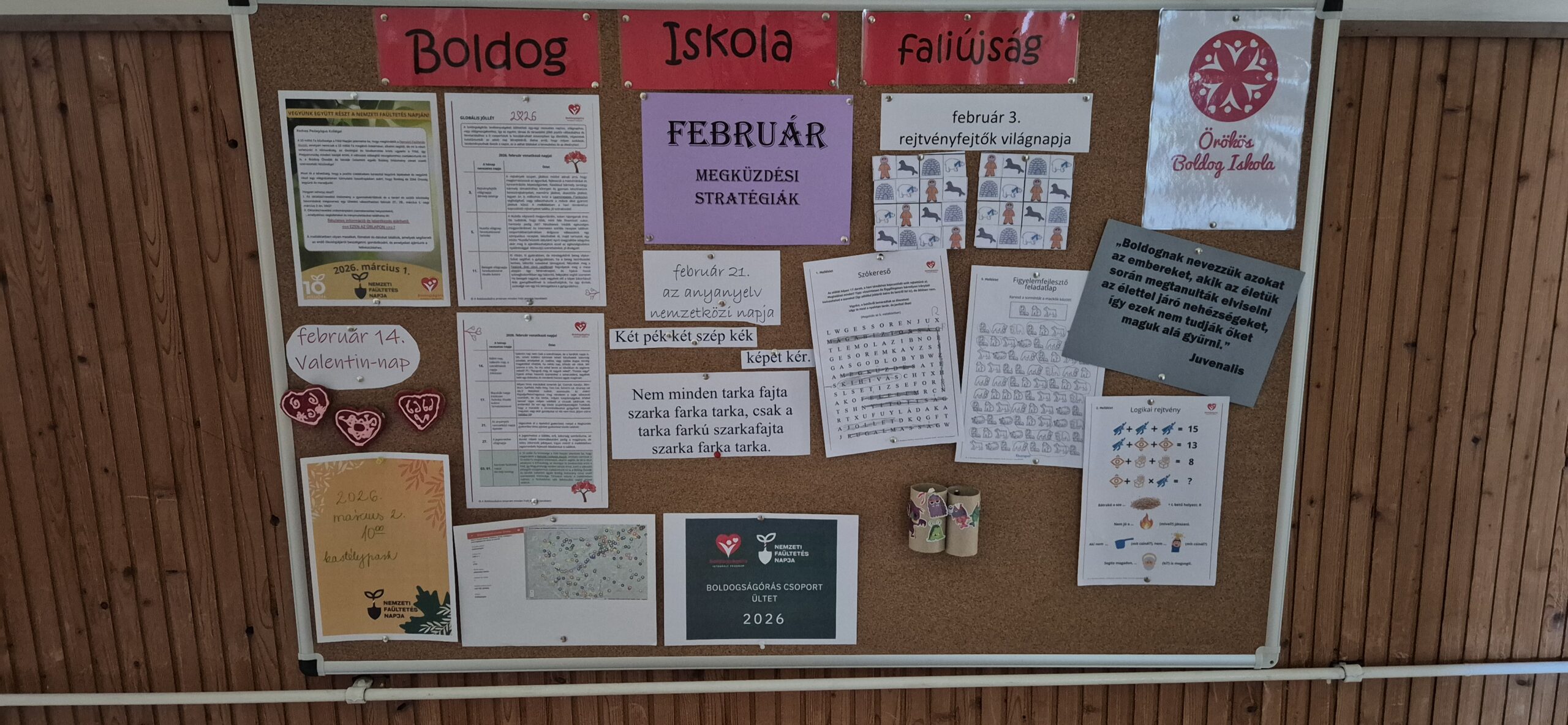 Valentin napot is tartottunk az iskolában. Mindenki papírszíveken üzenhetett szerelmének, barátjának, tanárának. Nagy érdeklődés kísérte a programot, a csálé betűk mellett matricák is kerültek a szívekre. Boldog volt adó, kapó.