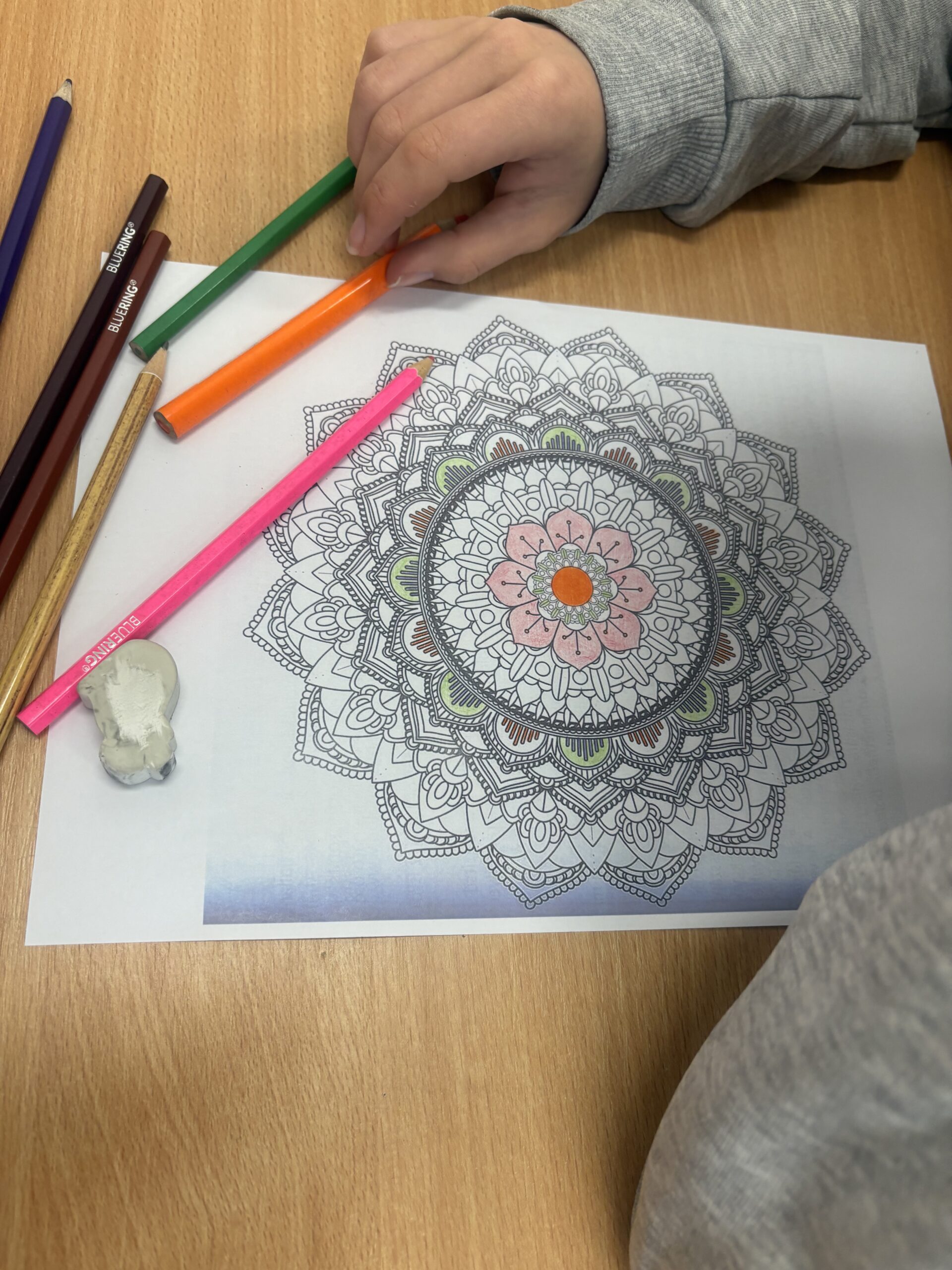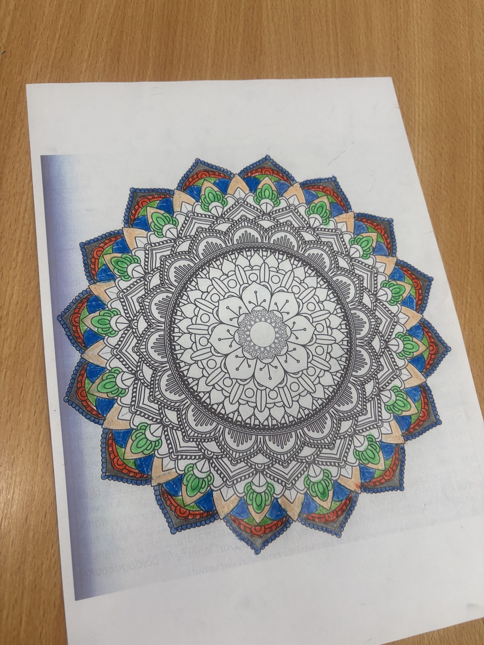 Bevezető beszélgetés, majd a téma kibontása. Kinek mit jelent. Miért fontos az életünkben? Órai feladat öröm és szerencsemandala készítése, egyedi megoldásra törekvés! A munkát otthon kell befejezni! Majd a szobájukban elhelyezni. Örömnapló tervezése a tavaszi szünetben egy hónapos próba. Az óra végét meditációval zártuk.