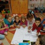 Bella kedves és nyugalmat árasztó dala után közösen rajzoltuk meg a nagy fát, melyen elhelyeztük azokat az állatokat, amelyeknek örömöt okozott. A gyerekek nagy örömmel fűzték tovább a mesét és megbeszéltük, hogy mi miért is vagyunk minden nap hálásak. Etután elkészítette mindenki a saját hála-fáját, rajta a kis állatokkal, majd felragasztottuk a lépcsőre a hála virágokat.
