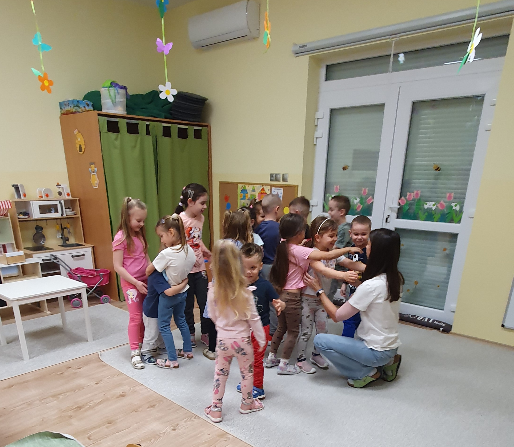 Volt egy nyílt napunk is az óvodában, ahol néhány játék, relaxációs gyakorlat erejéig bepillantást nyújtottunk a leendő szülőknek és gyerekeknek a Boldogságóra hangulatába, majd a „Jól érzem magam boogie” zenére együtt táncoltunk néhányukkal.