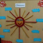 Ezt követően a népművészetben a reményt, a megújulásban való hitet, a pozitív jövőképet kifejező szimbólumokat kerestük. Ezek közül a Napot alkottuk meg faliújságunkra közösen, úgy, hogy mindenki készített körmöcskével fonalhurkákat, s ebből állítottuk össze a mosolygó Napot, majd köré raktuk a korábban a felhőkre írt optimizmusra bíztató gondolatokat.