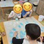 Egy előkészített csomagolópapírra elkészítettük a csoport hóemberét is festék és ecset segítségével.
