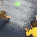 Közös játék: Hópehelyfújás. Minden gyermek kapott egy szalvétát, amit kedve szerint gombóccá gyúrhatott. A meseszőnyeg közepére egy körlapot helyeztem el, amire a „hópelyheket” fújhatták. Többször is megismételtük. Amikor ez már jól ment, 3 körlapból formáltam nekik hóembert. Ide kellett a saját gombócokat ráfújni úgy, hogy a többi ne mozduljon el a helyéről. Ezt a játékok nem egyszerre, hanem egymás után végezték a gyerekek. Egymásnak szurkolva, koncentrálva az egyéni feladatra, a nekem is sikerült érzést erősítve bennük.