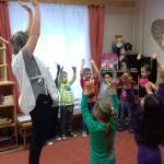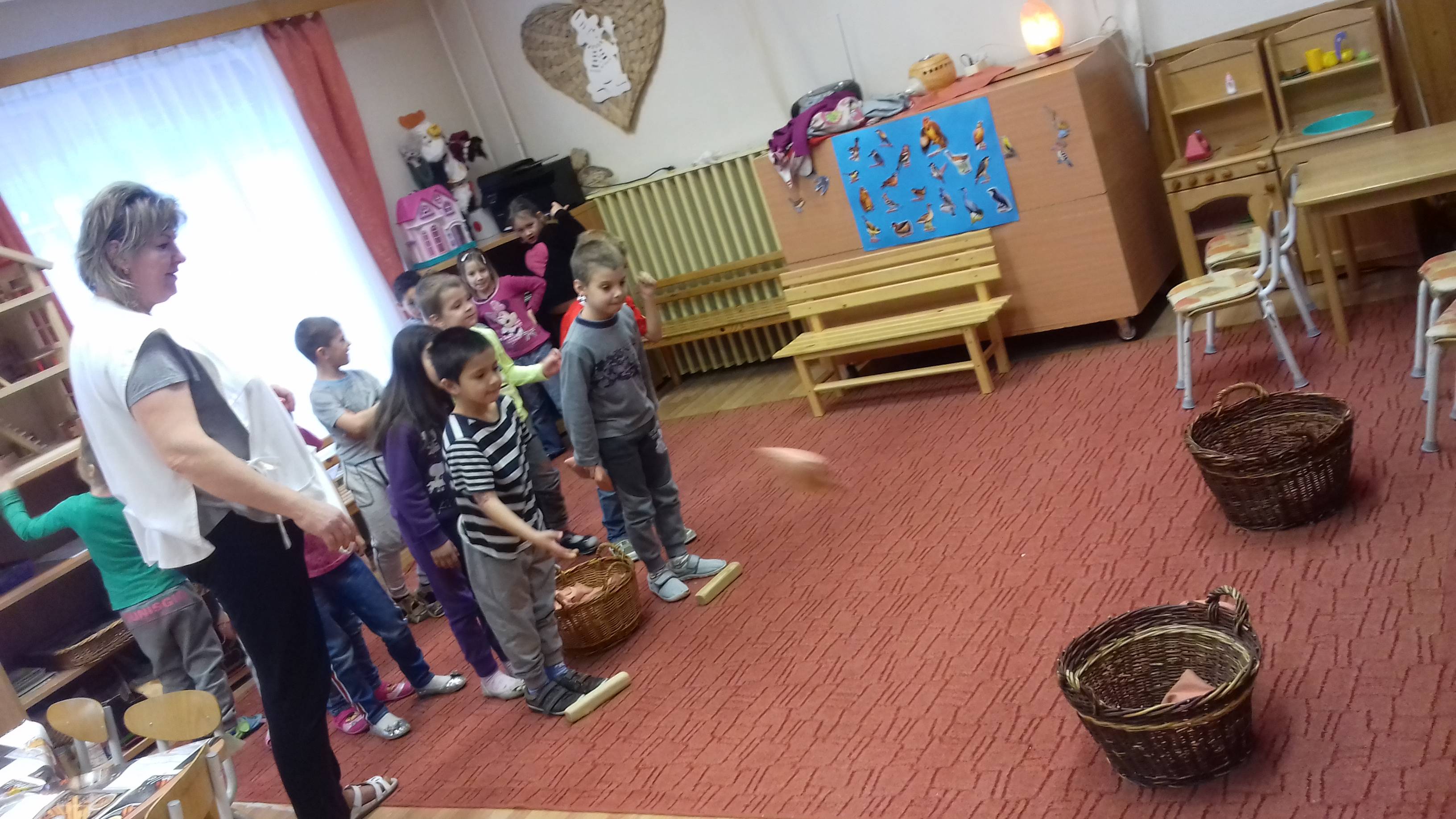 4. Babzsák célba dobása különböző távolságra elhelyezett kosarakba.
