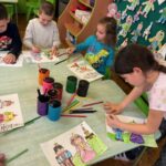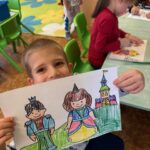A kicsiknek sárkány képet adok amiket kifesthetnek.