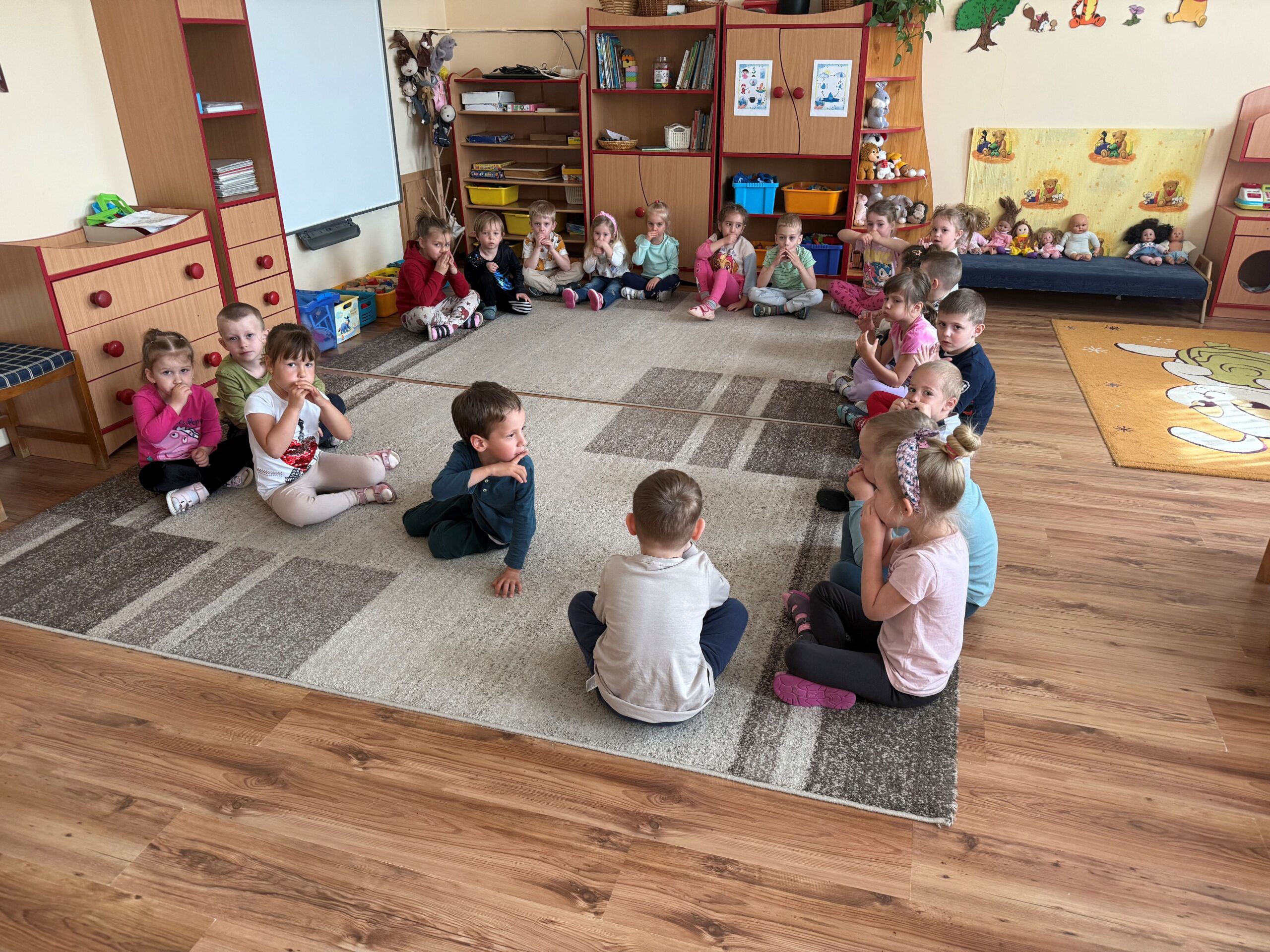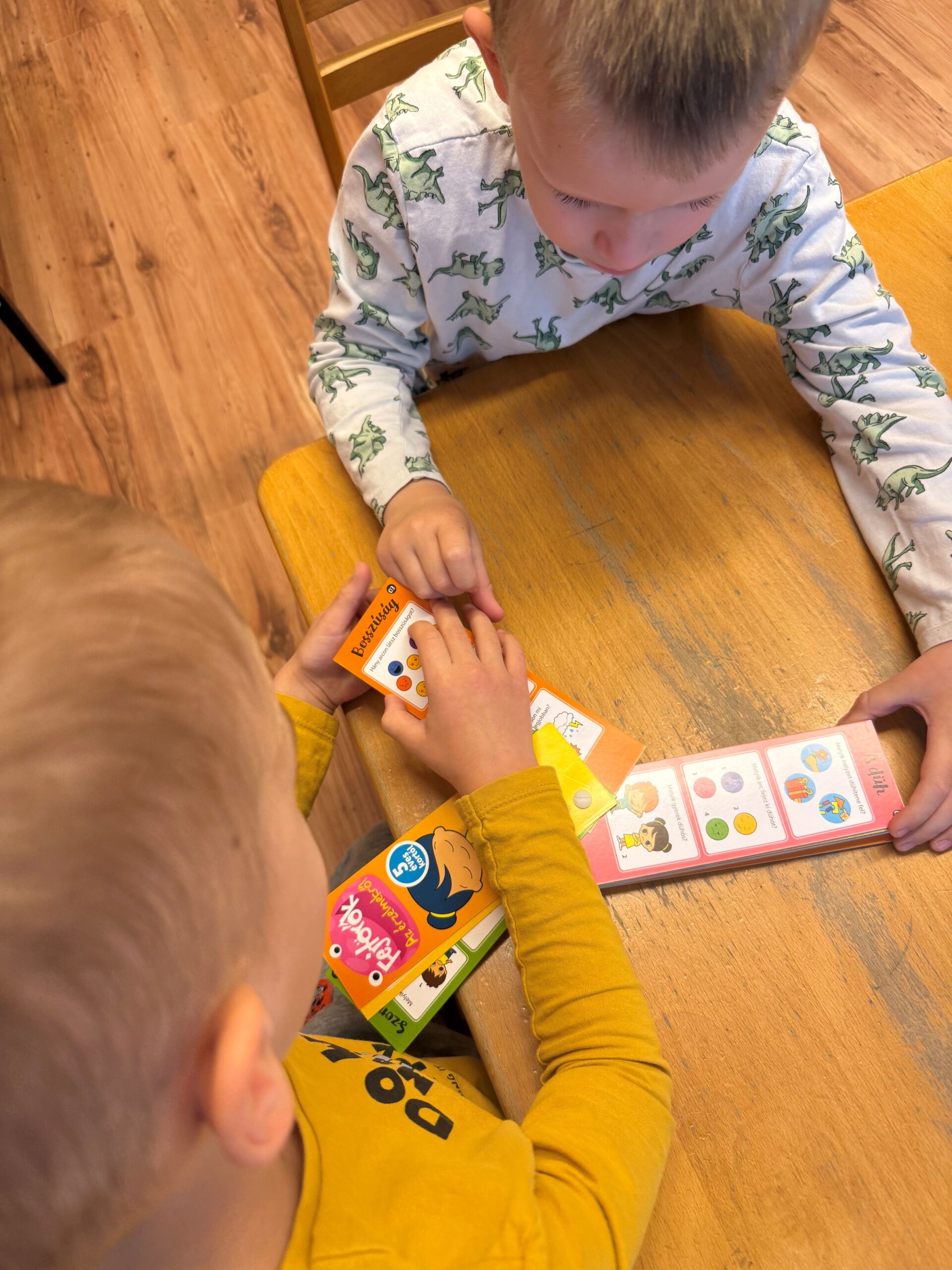 A foglalkozást egy beszélgetéssel indítottuk, ahol körben ülve arról meséltek, mit éreznek bizonyos helyzetekben – például amikor elveszik a játékukat, vagy ha valaki nem játszik velük. Plüssfigurákkal, érzelemkártyákkal és arcmimika-gyakorlatokkal segítettük a felismerést és a megfogalmazást. Külön figyelmet szenteltünk annak, hogy a gyerekek lássák: minden érzés megengedett, és nem baj, ha néha mérgesek vagy szomorúak – a fontos az, hogy tudjuk, mit tehetünk ilyenkor.