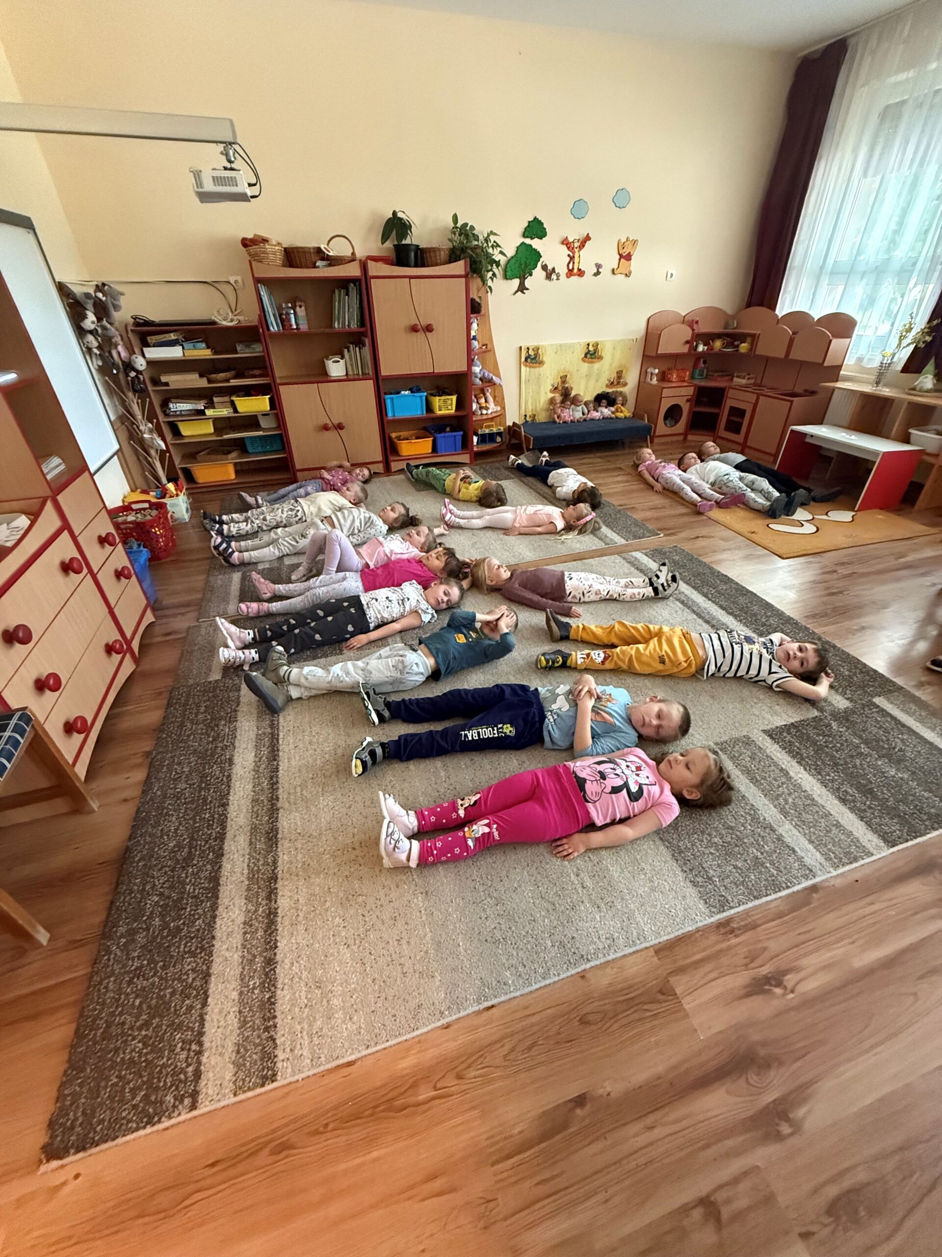 Relaxációs mesét hallgattak a szőnyegen, mely során ellazultak és megtanulták, hogy ha egy képzeletbeli labdát vesznek a kezükbe nehéz helyzetekben, akkor az segíthet átvészelni az izgulást, félelmet és egyéb nehéz helyzeteket.