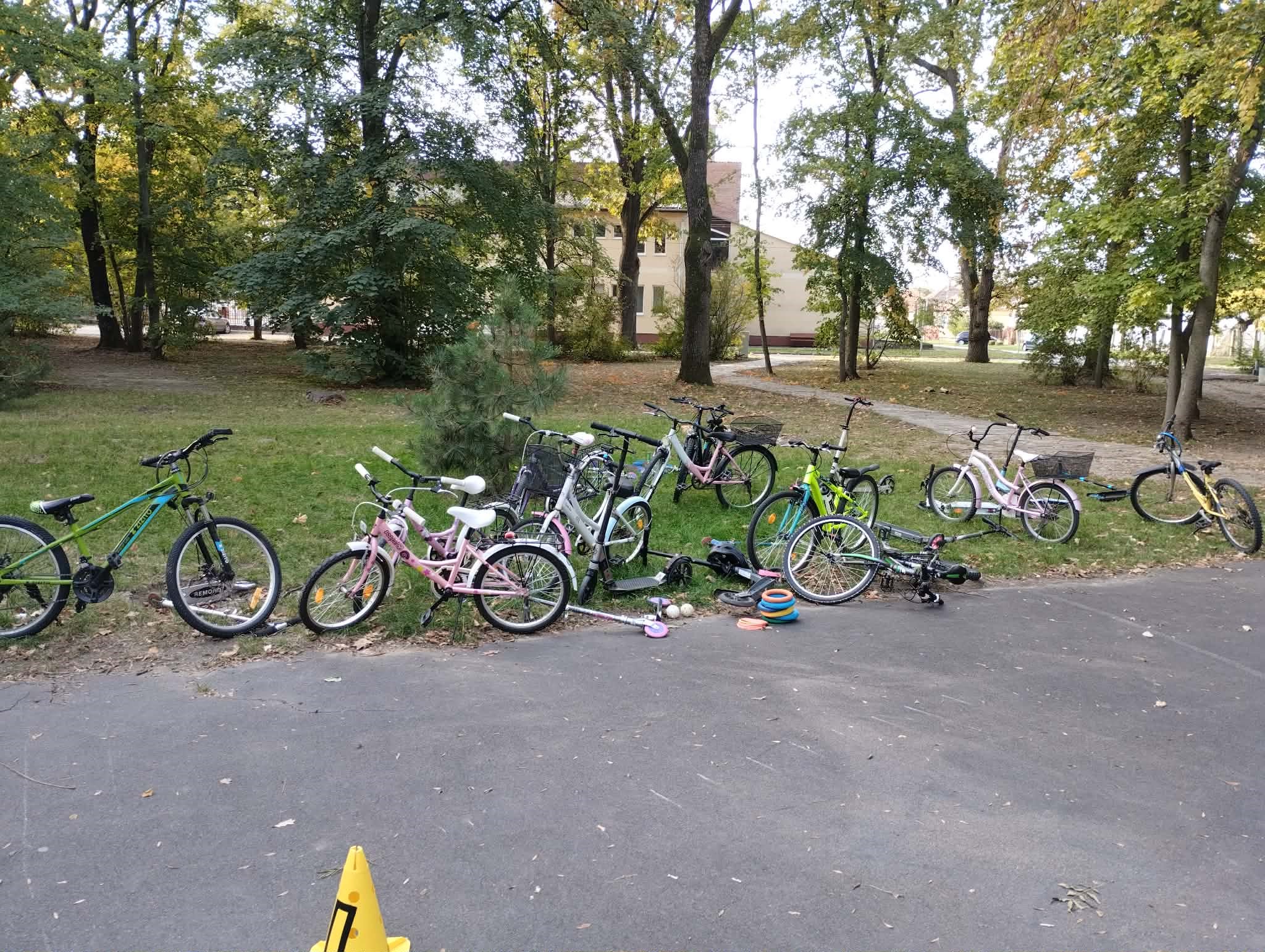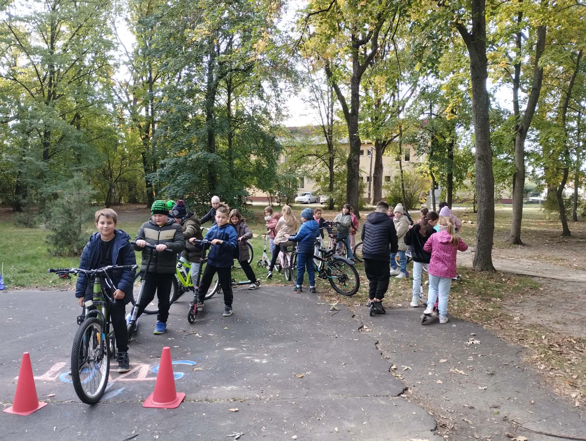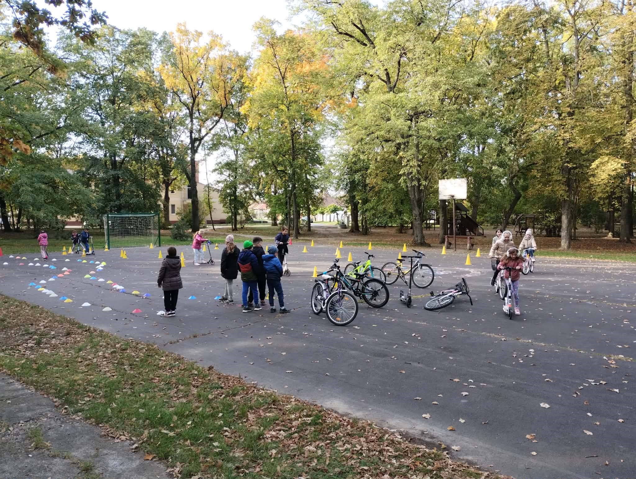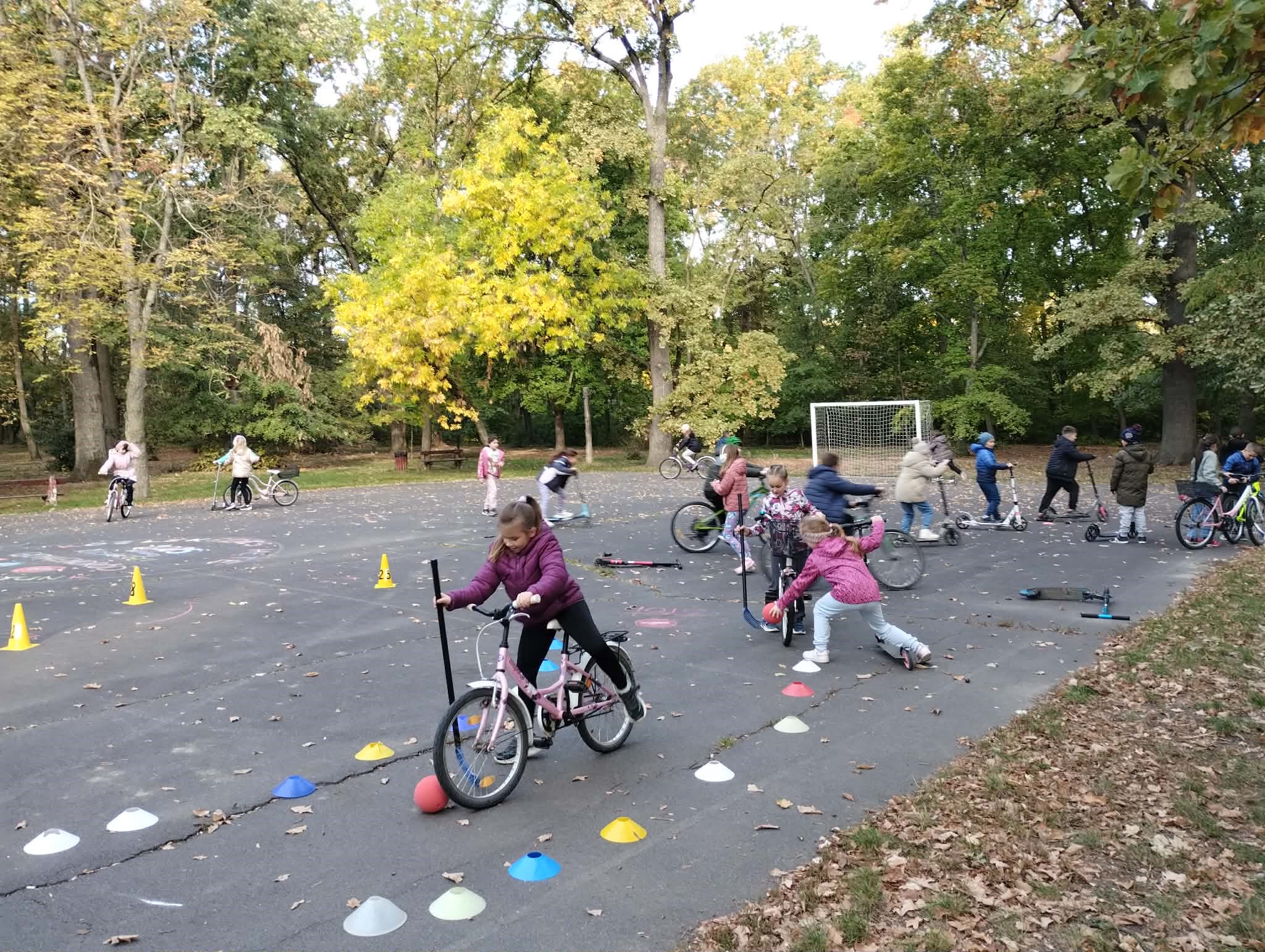 A ligetben a diákok kerékpáros és rolleres akadálypályán próbálhatták ki ügyességüket. A pálya izgalmas feladatokkal várta őket: kanyarok, szlalom, egyensúlyozás és „megállj!” pontok tették próbára a résztvevők figyelmét és mozgáskoordinációját.