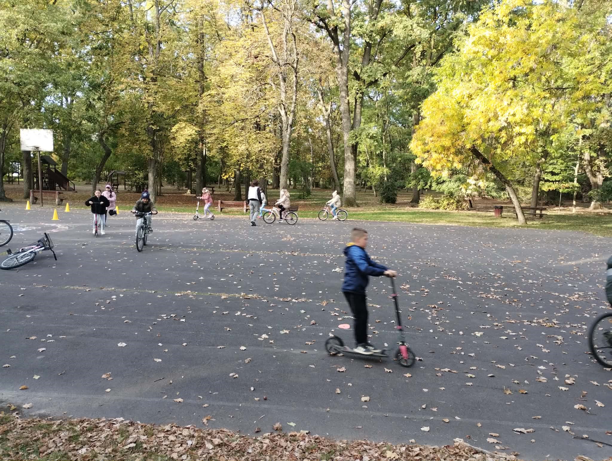 Erre az alkalomra egy nagyobb lélegzetvételű feladattal készültem nekik. Volt amit a tanteremben végeztek el, és volt amit a ligetben rollerrel vagy kerékpárral.
