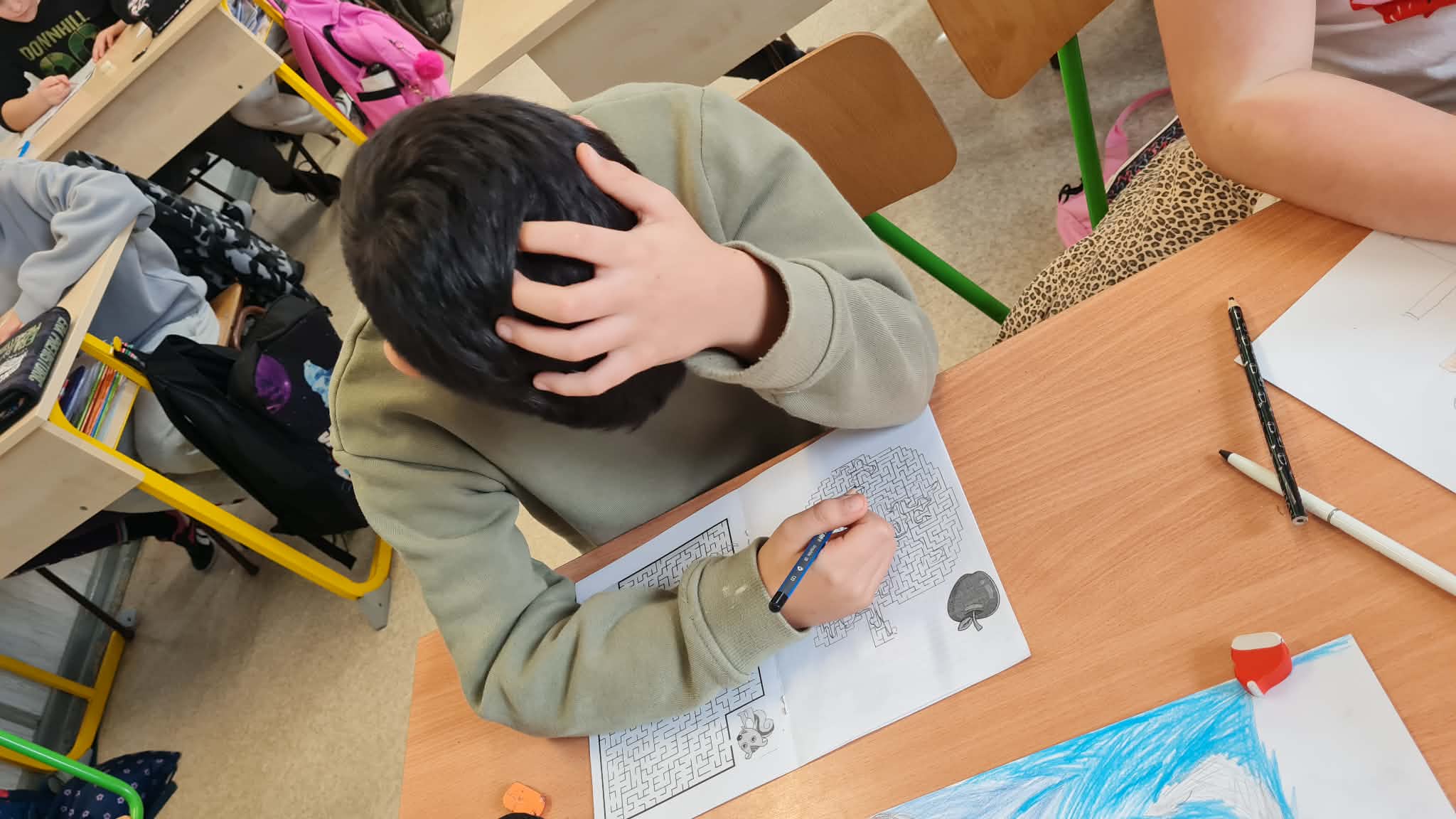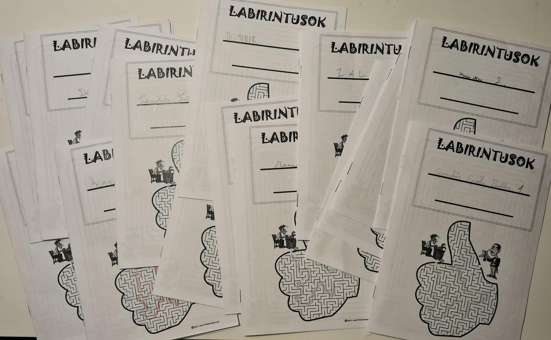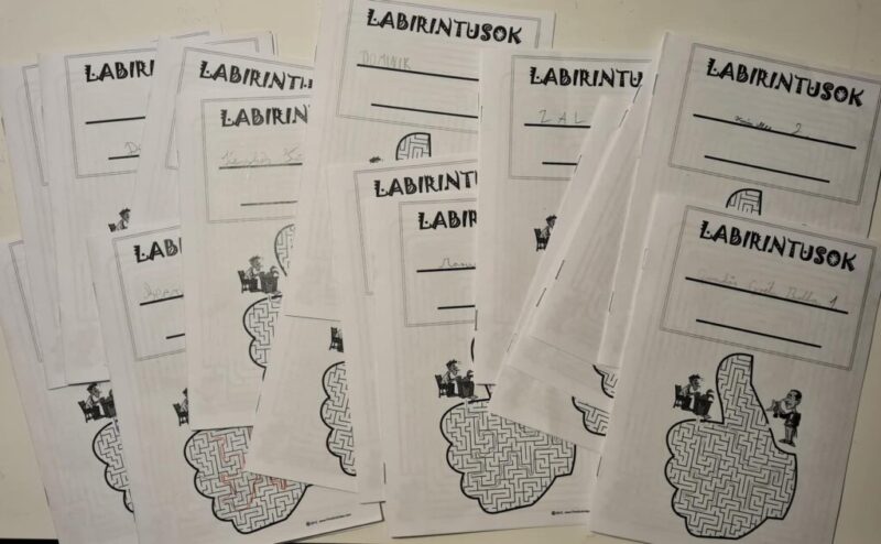 A témakörhöz ismét a labirintusok okozta nehézségek leküzdését választottam. Vannak gyerekek akik nagyon szívesen keresik az utat a célhoz, viszont vannak akik önmaguktól soha nem próbálnának meg a labirintus egyik pontjából a másikba átjutni. Olyan is volt, aki közölte, hogy ő mennyire nem szereti a labirintusokat. Senki nem adta fel. Mindenki végigvezette az összes labiruntusban a Start-tól a Cél-ig lévő útvonalat.