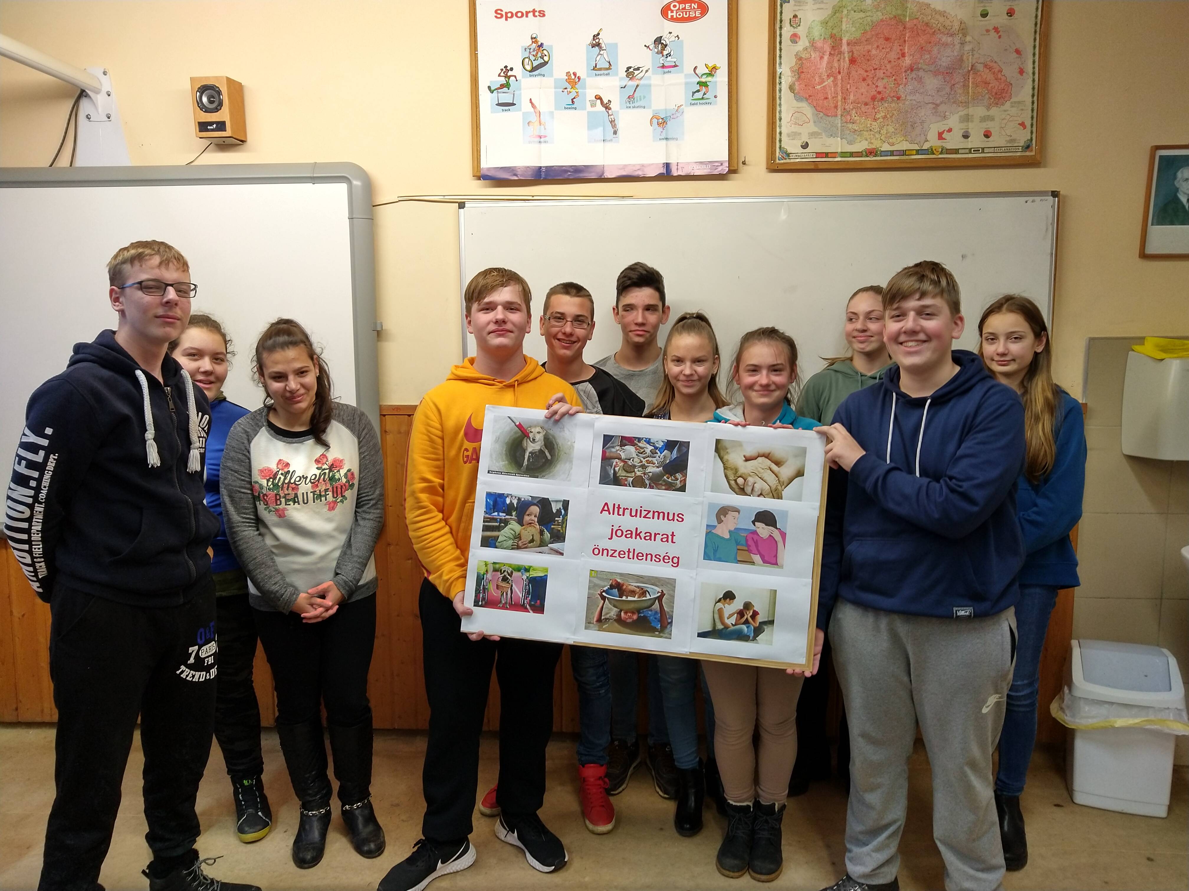 A foglalkozást azzal kezdtük, hogy képeket mutattam a tanulóknak. Mi jut eszükbe róluk? Először a kútba esett kutyáról kezdtünk el beszélni, illetve bajba jutott állatokról. Majd a rászoruló emberek, betegek és idősek is szóba kerültek. A gyerekek megosztották az élményeiket, tapasztalataikat. Beszéltünk az ünnepi adakozásokról. Betegek, rászorulók részére élelmiszer és ruhaadományokról.