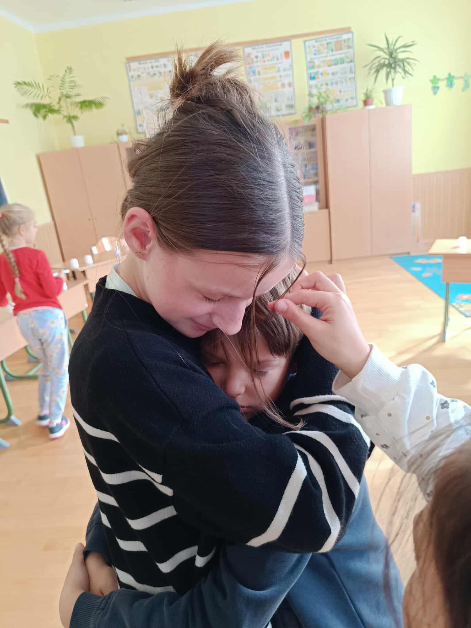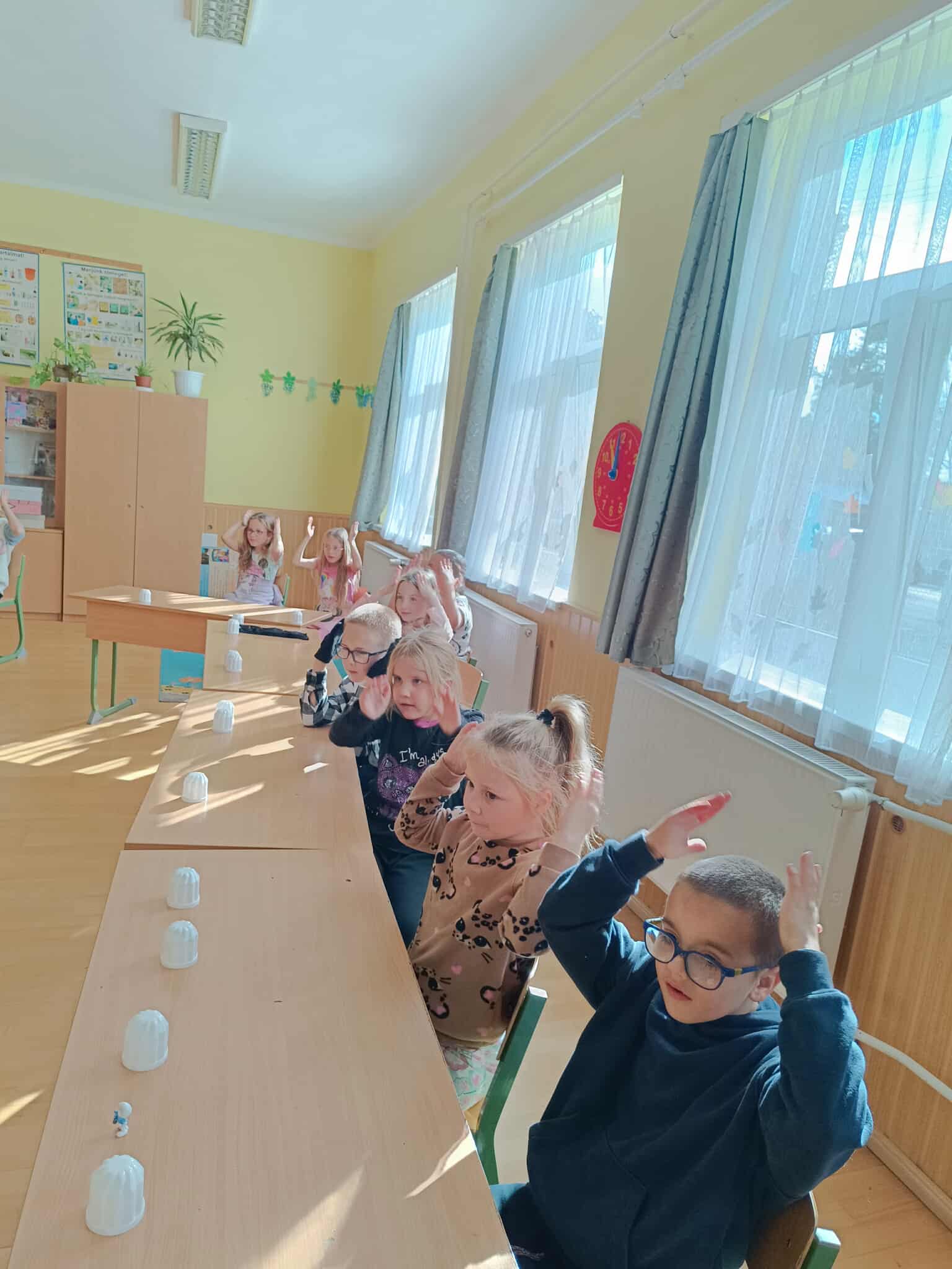 Tisztáztuk az optimizmus szó jelentését, majd Optimista Olga és Pesszimista Panna jelenetét nézhettük meg két kislány rögtönzésében. Ritmusos zene következett, mely az interaktív táblán lett bemutatva. Könnyen elsajátítottuk, a hangulatunk továbbra is pozitívan erősödött.
