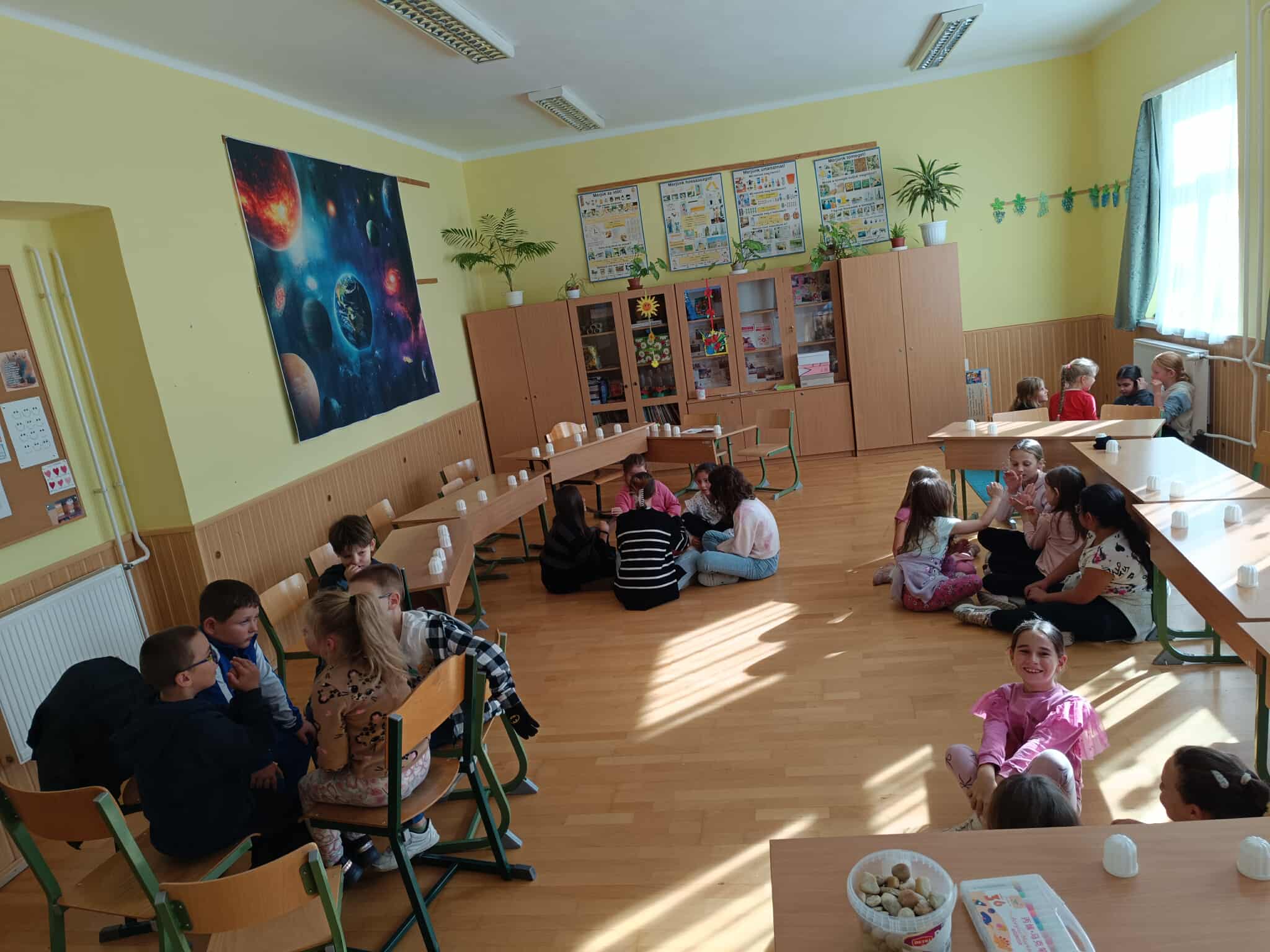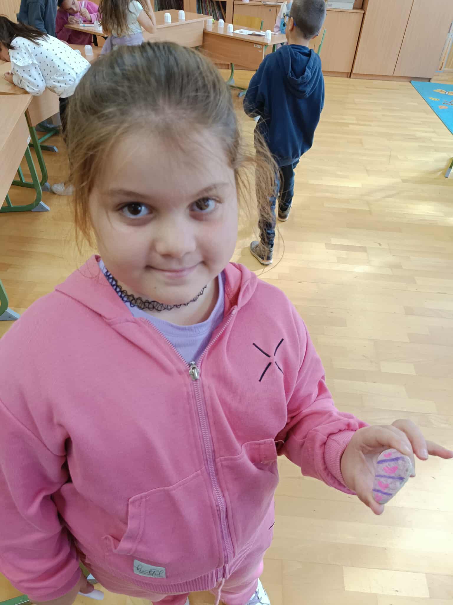 Erőt adó kavicsok megrajzolásával próbáltunk magunknak és másoknak örömet szerezni. Igazán jó volt együtt! Mindenki vitt magával optimista gondolatokat, jó érzéseket, öleléseket. Nemcsak Boldogság órákon, hanem a tanítási órákon is megjelennek a boldogságra törekvés elemei, módszerei, játékai.