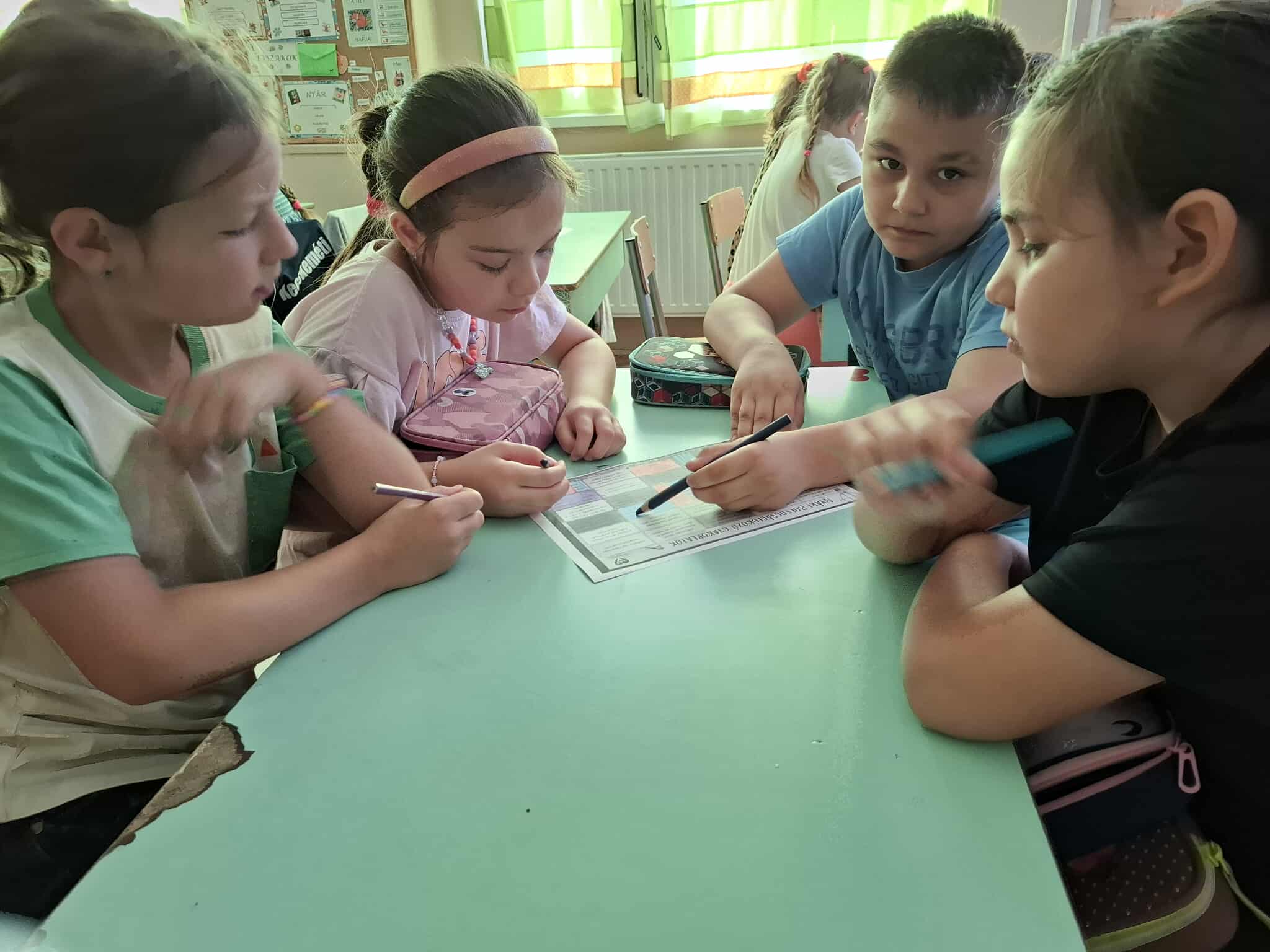 A kicsi osztályommal sokat beszélgettünk az elmúlt időszakban miket is fogunk a nyári szünetben csinálni. Ehhez kapcsolódva kis csapatokban dolgoztunk a nyári boldogságfokozó gyakorlatos lapokon. Mindenki választott egy színt magának és és miután közösen elolvasták az apró feladatokat, választott magának legalább 2-3 célt, amit megpróbál a nyári szünetben megvalósítani belőle.