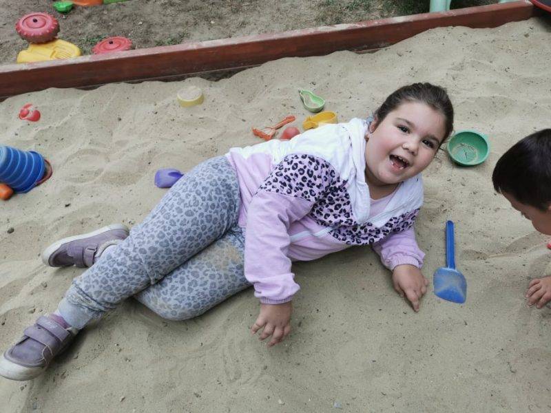 A nyári élményeinket szerencsésen a gyönyörű napsütésben, az udvaron tudtuk eljátszani újra és újra. A trambulin, a homokozó remek alkalom volt a felidézésre, ismétlésre.