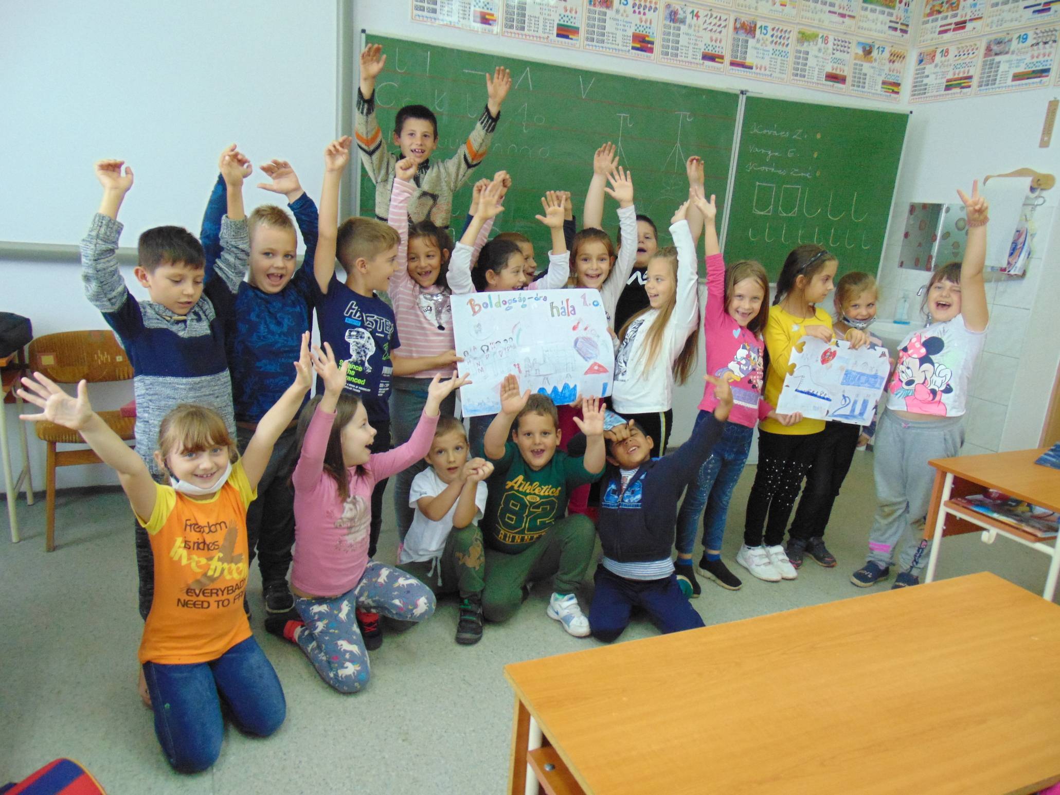 A kis elsősökkel azzal indítottuk az órát, hogy megbeszéltük a hála szó jelentését. Elmondhatták, hogy kiknek miért tartozhatnak nap mint nap hálával. Ezután odasétálhattak egyik osztálytársukhoz és elmondhattak egy-egy mondatot ezzel a kezdéssel: Hálás vagyok neked, mert…. Először nehezen öntötték érzéseiket szavakba, volt aki inkább beszéd helyett megölelte kis társát. Leginkább a barátságért, együtt töltött játékért, egymásra szánt időért voltak hálásak. Természetesen nagyon jó érzés volt, amikor hozzám is odalépett egy -egy kis diák. Később rajzban nyári élményeiket mutathatták be. Ezeknél a pillanatoknál a strandon nyaralással, kirándulással töltött élményeik jelentek meg leggyakrabban.
