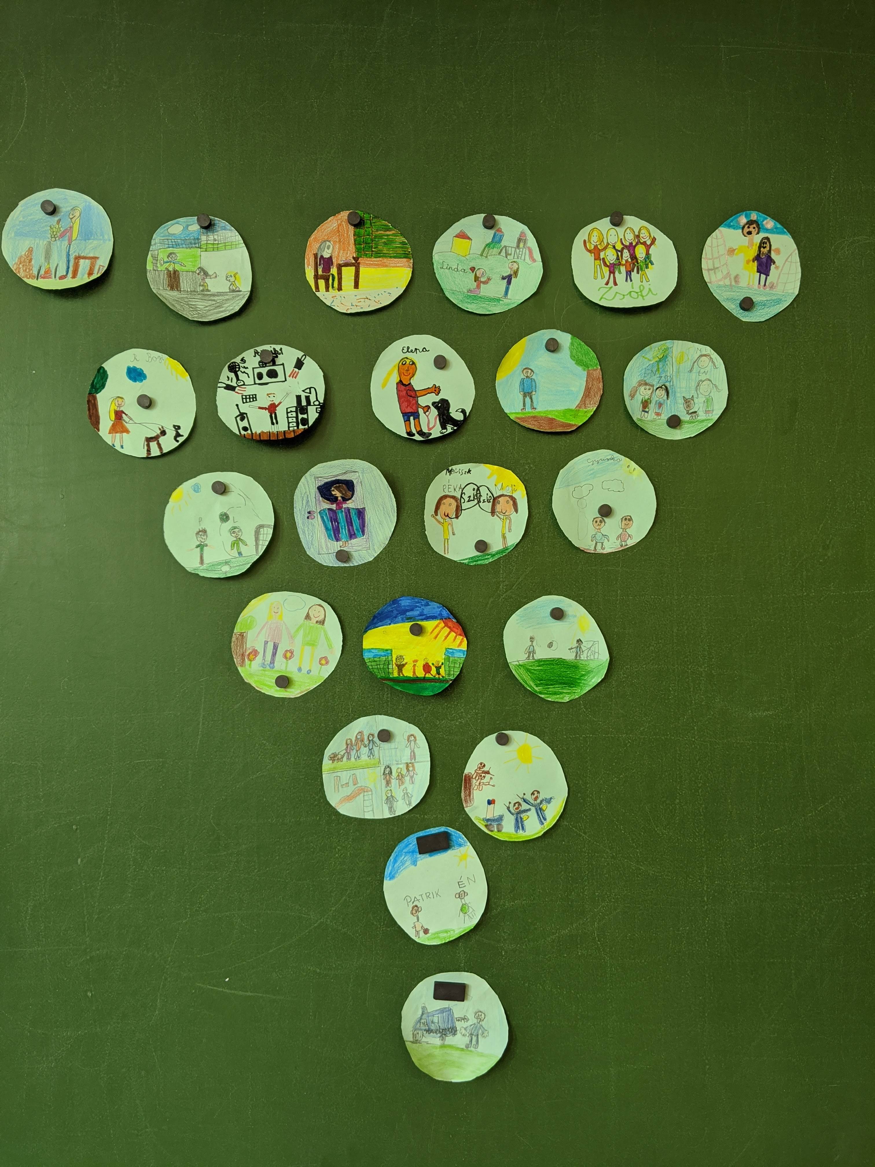 A gyerekekkel az óra első felében beszélgettünk arról, hogy miért lehettek hálásak a nyáron. Ezután megbeszéltünk egy őszi motívumot, amiben ábrázolni fogjuk azt (szőlőfürt).