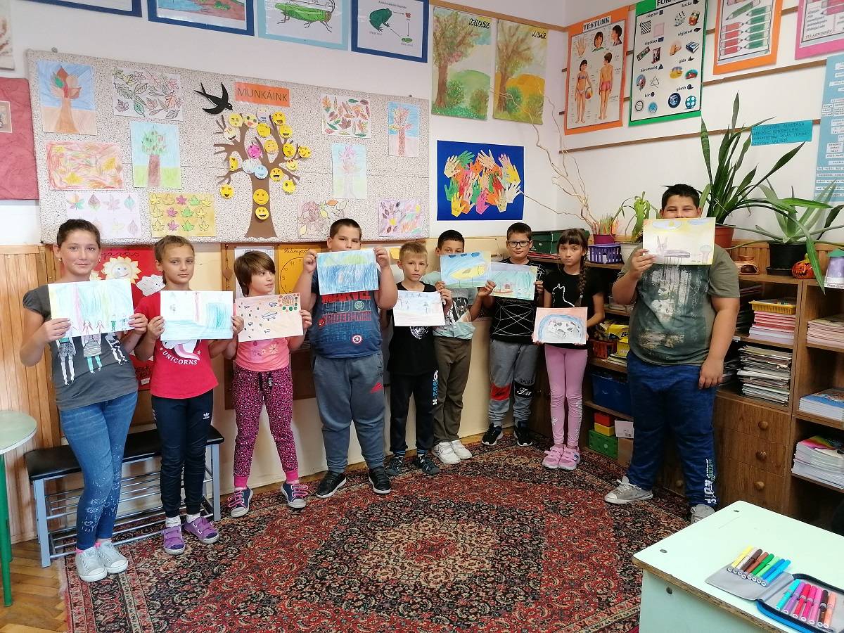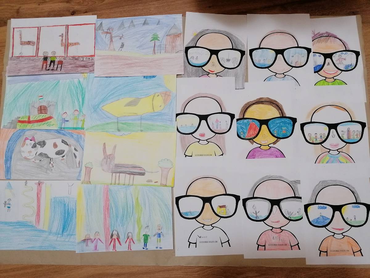 Az elkészült rajzokat bemutatták egymásnak, és meséltek is róla.