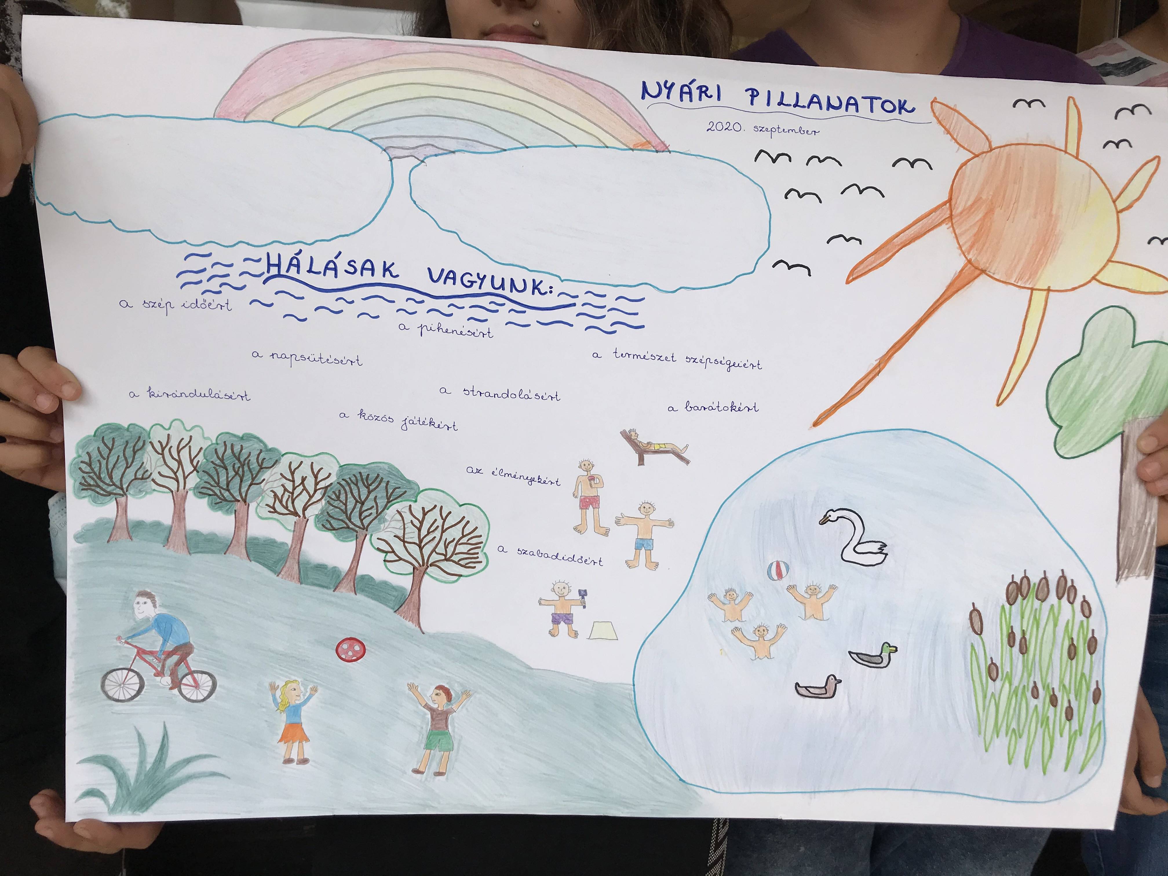 A plakátunkon igyekeztünk megörökíteni a nyár legszebb pillanatait: a biciklizést, kirándulást a természetben, a közös játékot, a strandolást, pihenést, fagyizást, a napsütést és az önfeledt pillanatokat. 🙂