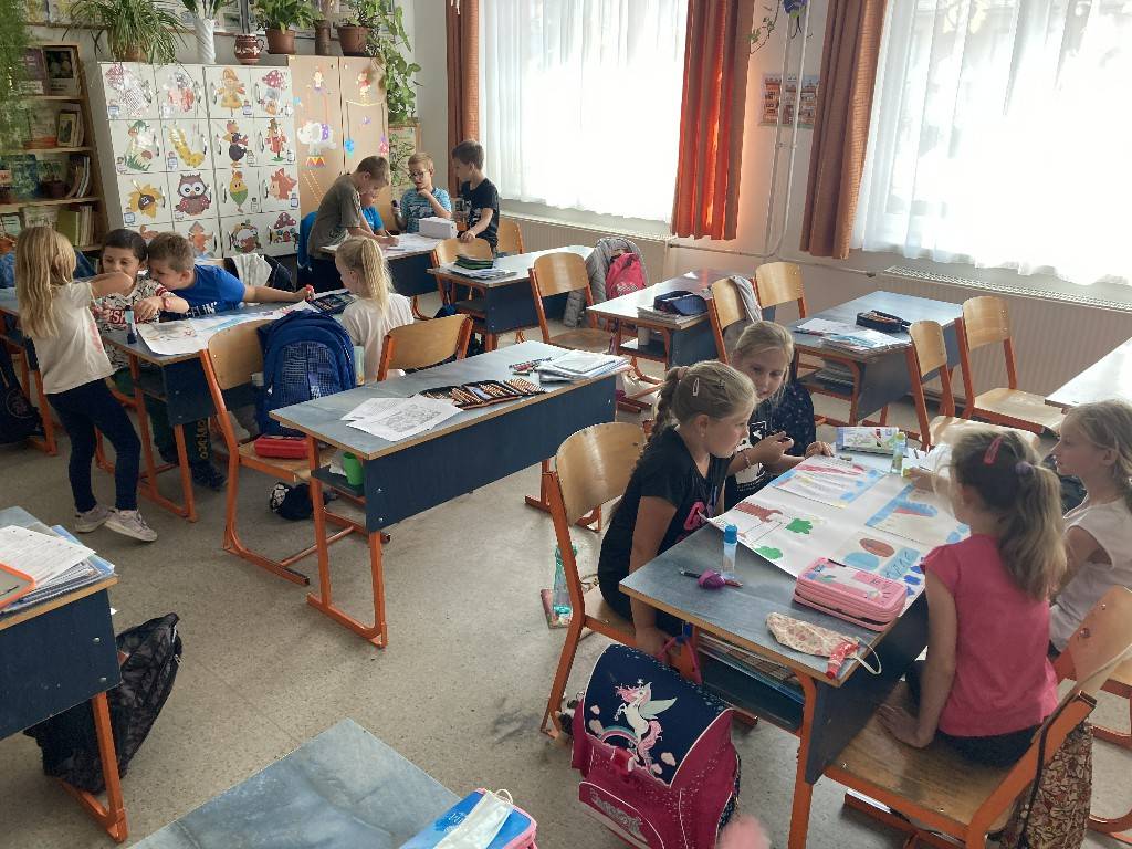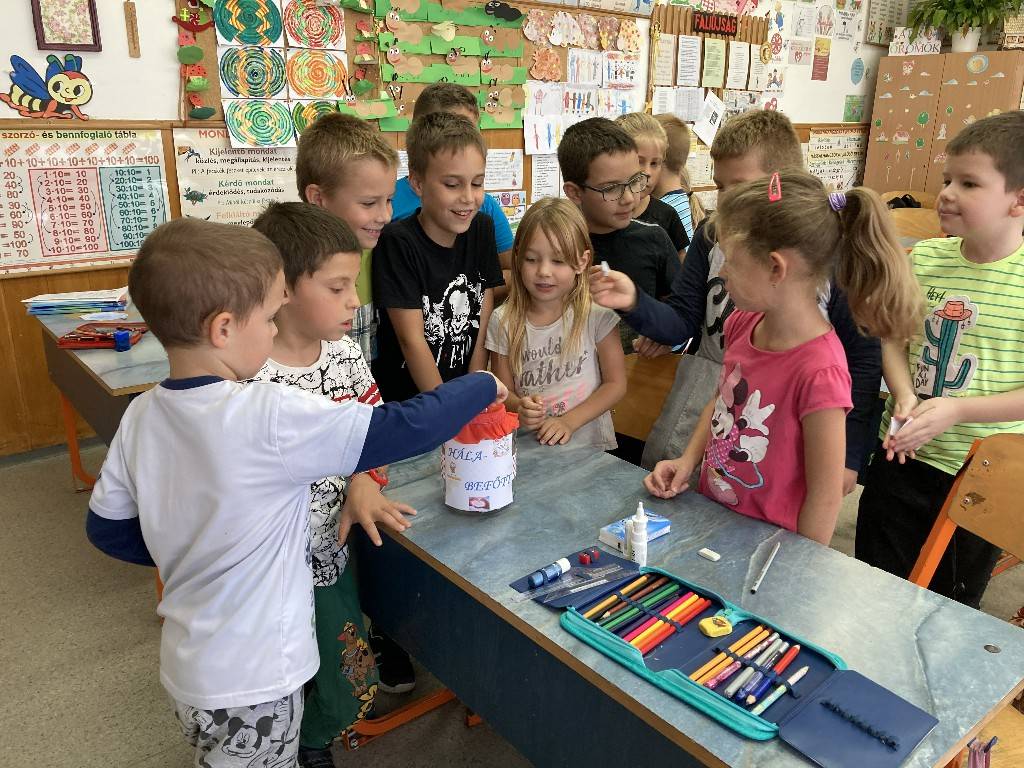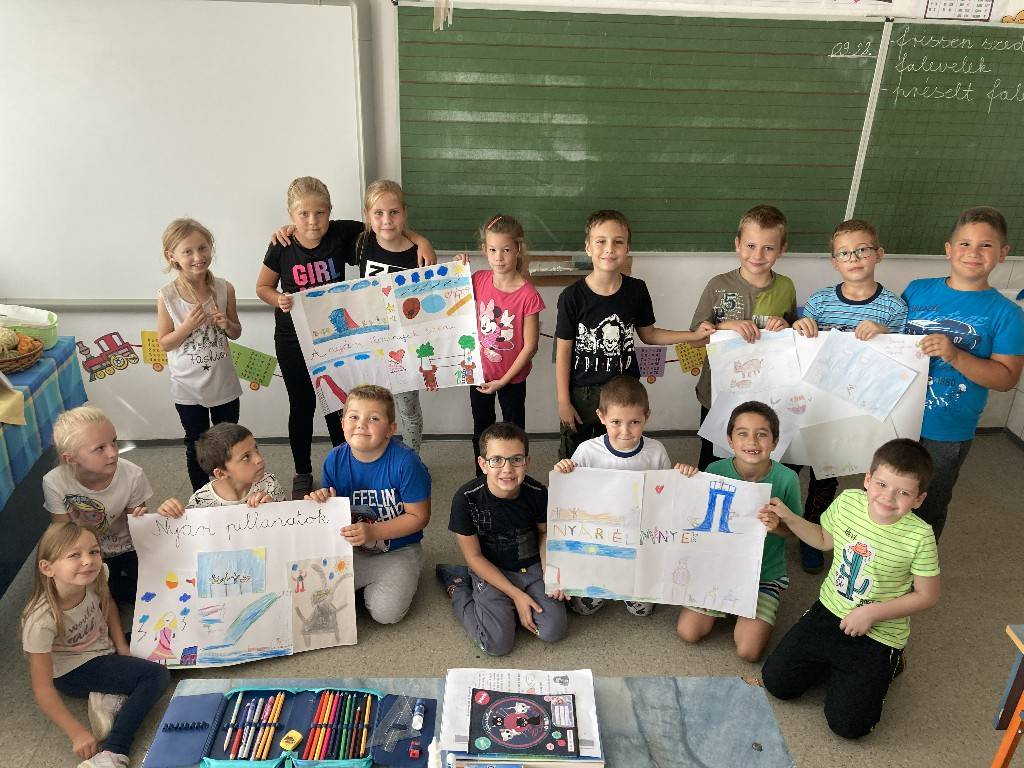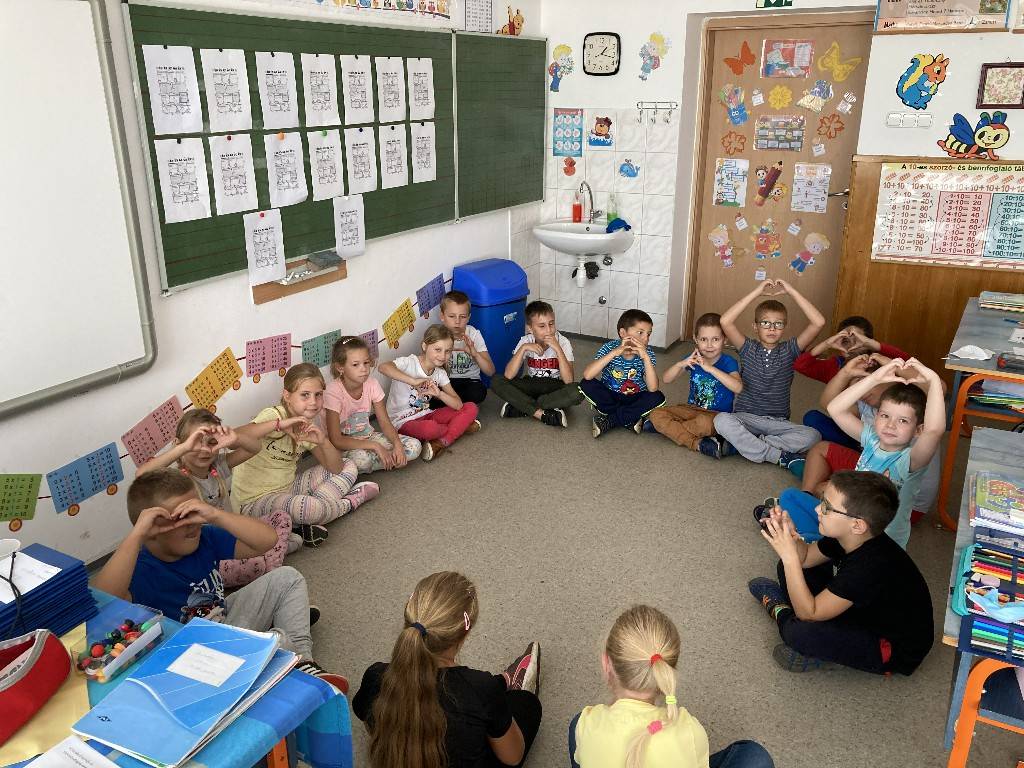 Az idei tanévben, mint 2. osztályos tanulók vágunk neki a kalandokkal, izgalmakkal, örömteli pillanatokkal teli 10 hónapos Boldogságóra programnak. A bevezető beszélgetés során megbeszéltük, hogy milyen témákat érintünk a tanév során. Az Én és az új év című feladatlapon mindenki megfogalmazta, vagy lerajzolta, hogy miben szeretne fejlődni, változni. Ezután játék következett: Jobbra-balra, Hála kör labdával. Itt elmondhatták egymásnak, hogy miért hálásak. Ezt követően 4 fős csapatokba szerveződve rajzokat készítettek a nyár Leghálásabb pillanatairól. Hálabefőtt is készült. Egy üres befőttesüvegben egész évben kis jegyzetlapokon gyűlnek majd a hálát keltő pillanatok, szép emlékek. Természetesen a hónap háladala is felcsendült, kis koreográfiával kísérve.