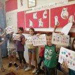 A nyári szünet öröme mindig magában hordozza az elválást is a vakáció idejére, ezért jókívánság képeslapokat készítettek a gyerekek egymásnak. Kis papírokra írtuk a csoporttagok neveit, és mindenki kihúzta egy társát, akinek szép és kedves dolgokat írhatott, rajzolhatott a képeslapjára. Magam is meglepődtem mennyire komolyan vették a gyerekek a feladatot és nagy szeretettel, gondossággal készítették a jókívánságokat egymásnak, majd az átadás is nagyon személyesre sikerült. Mindenki kíváncsian olvasta, silabizálta, őrizte, a neki szánt jókívánságot és a nap végén haza is vitték a gyerekek.