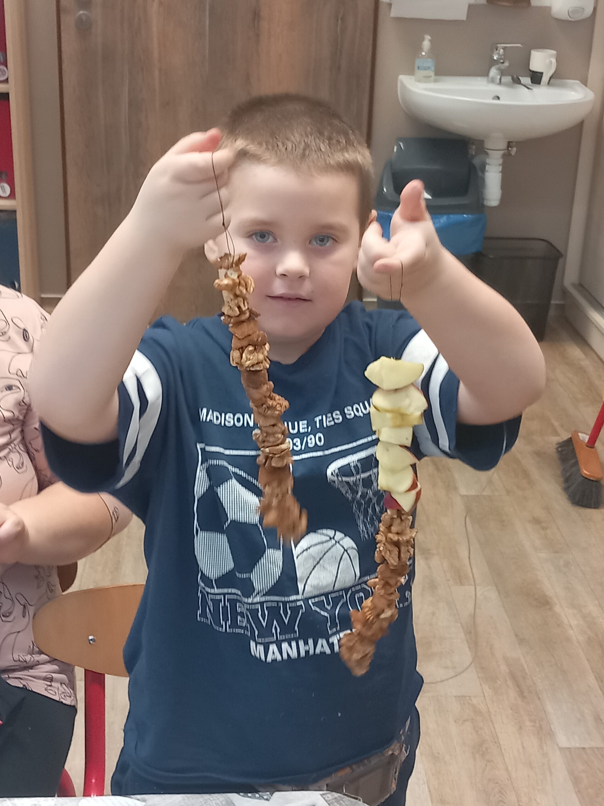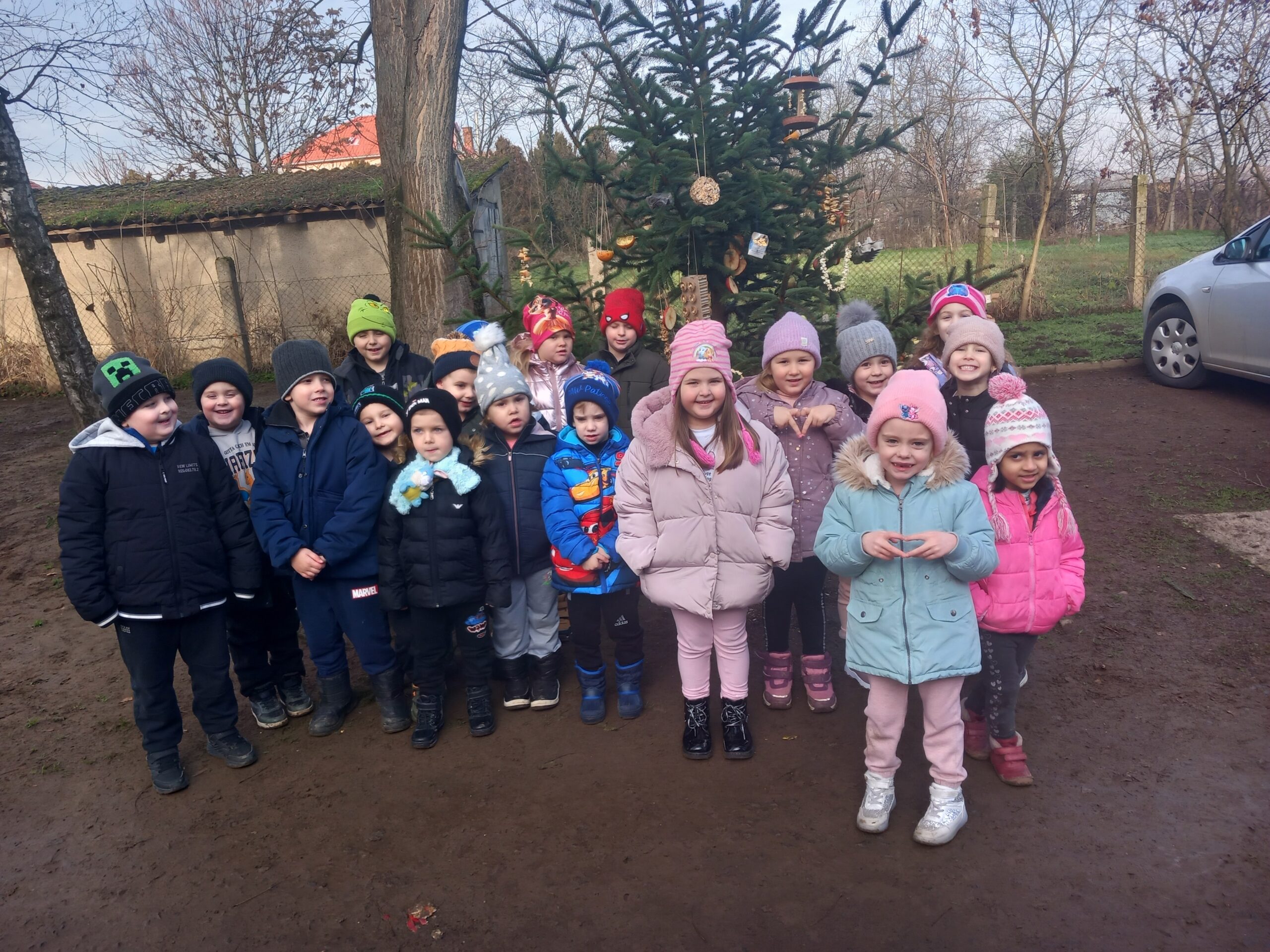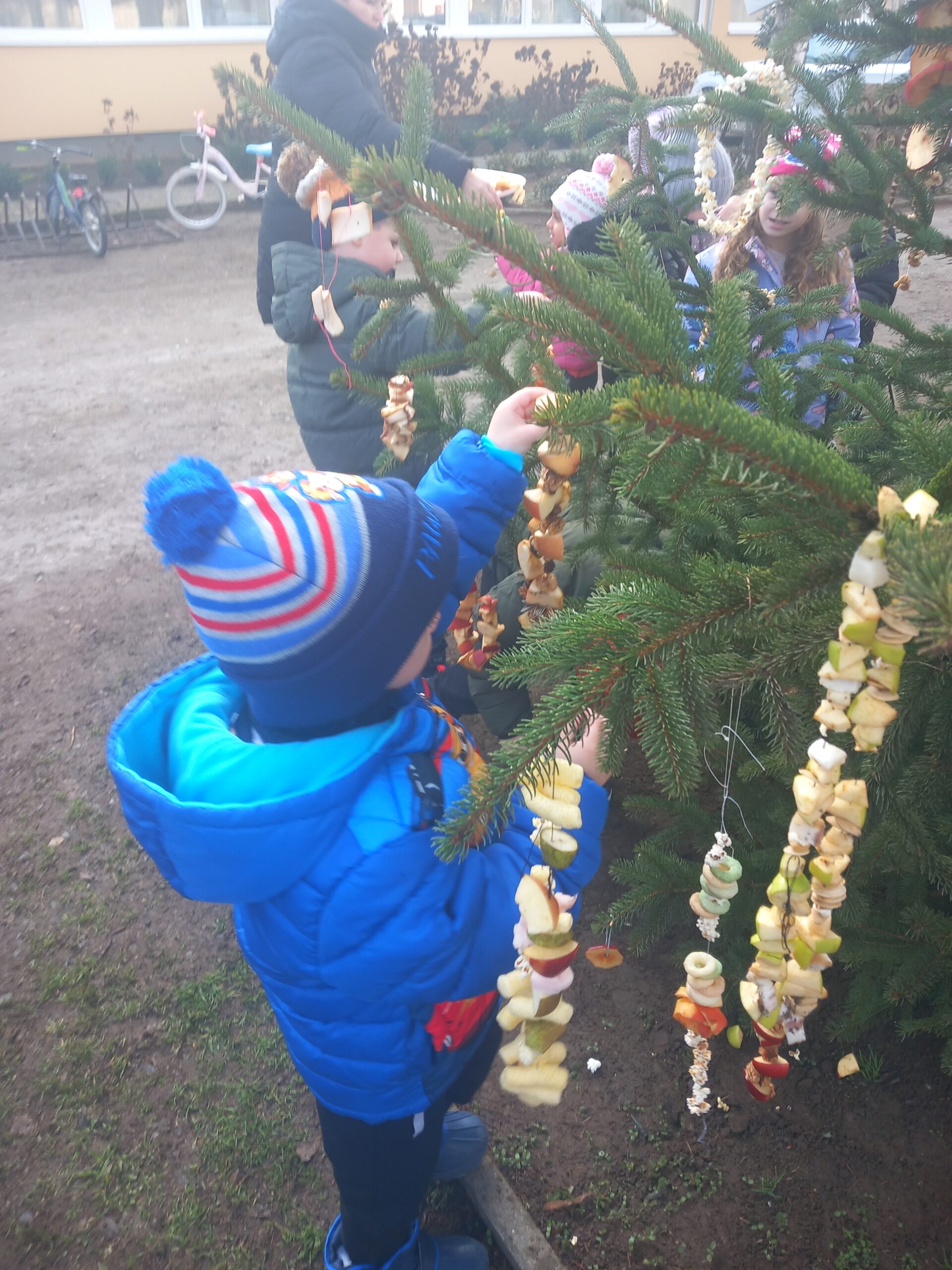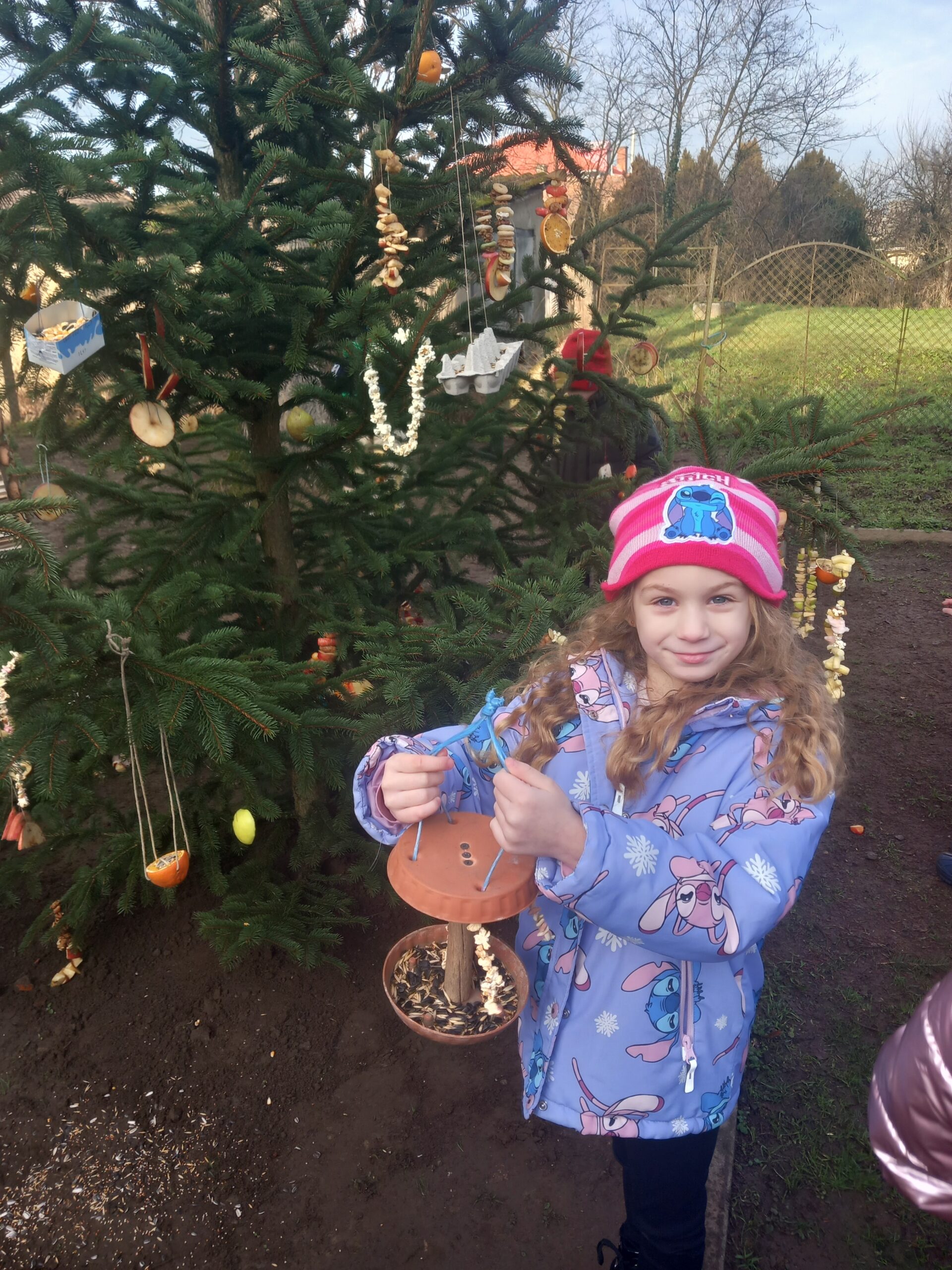 Madaraknak készítettünk közösen különféle eleségeket,amikkel feldíszítettük télére a madaraknak a madárkarácsonyfát.