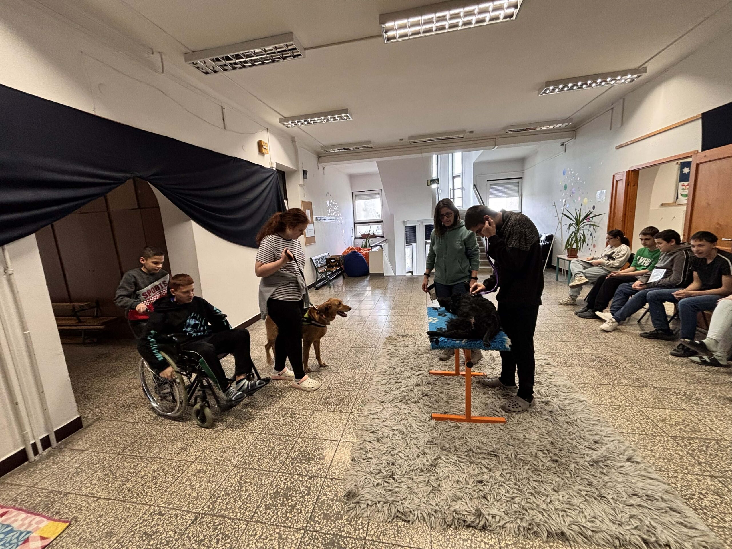 Februárban a Boldogságóra Erősség Program ajánlott havi témája a nyitott gondolkodásmód volt. A játékötletek közül a Hotelportás című játékot választottuk. Viszont ebben a hónapban állatasszisztált Boldogságórát tartottunk. Megnéztük a nyitott gondolkodámódról szóló ajánlott mesevideót, megbeszéltük a gyerekekkel, hogy mit jelent ez a kifejezés, hogy nyitott gondolkodásmód. Majd egy hallás, és beszédfogyatékos családot játszottak el gyerkek. A családban kutyus is volt. Így mentek a hotelbe, és kértek egy állatbarát szobát. Majd a következő portással történő beszélgetéskor azt szerették volna elmondani, hogy beteg a kutyus, és állatorvoshoz akarják vinni. Majd az orvossal történő beszélgetés, és vizsgálat során ismét mutogatniuk kellett. Ezen az órán a gyerekek az állatok szeretetét, a fogyatékosság iránti érzékenység érzelmeit élhették meg. Remek volt ez a kooperatív munka.