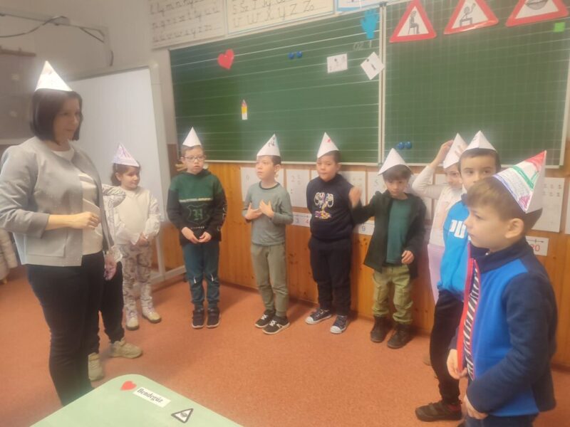 Február hónapban nagyon izgalmas programmal ismerkedtünk meg: az érzelemszabályozás és figyelemkontroll program keretein belül interaktív mindfulness mesét hallgattunk meg, majd dolgoztunk fel: Pillanatkapitány útnak indul. A kapitány segítségével igyekeztünk felfedezni a tudatos jelenlét világát, alapvető módszerként, több játékos légzőgyakorlattal a tudatos légzést sajátítottuk el, mely a koncentrációnkat is jelentősen fejleszti. A lufihas, a pitypang, a sas, a méhecske utánzása jó szórakozásnak bizonyult. A kapitány bátorsága, tulajdonságai hozzásegítettek bennünket a körülöttünk lévő dolgokban a jó meglátásához. Csákót hajtogattunk, minden kisgyerek olyan motívumokkal díszítette ki alkotását, amely hozzá kapcsolódik, amit kedvel, amiben ügyes. Felismertük azt, hogy a problémákkal való megküzdésben mind a nyugi légzés, mind a környezetünkhöz és önmagunkhoz való pozitív hozzáállás csak előrébb vihet. Közös „csákós” tánccal zártuk a foglalkozást, Bagdi Bella Ha boldog vagy dalára.