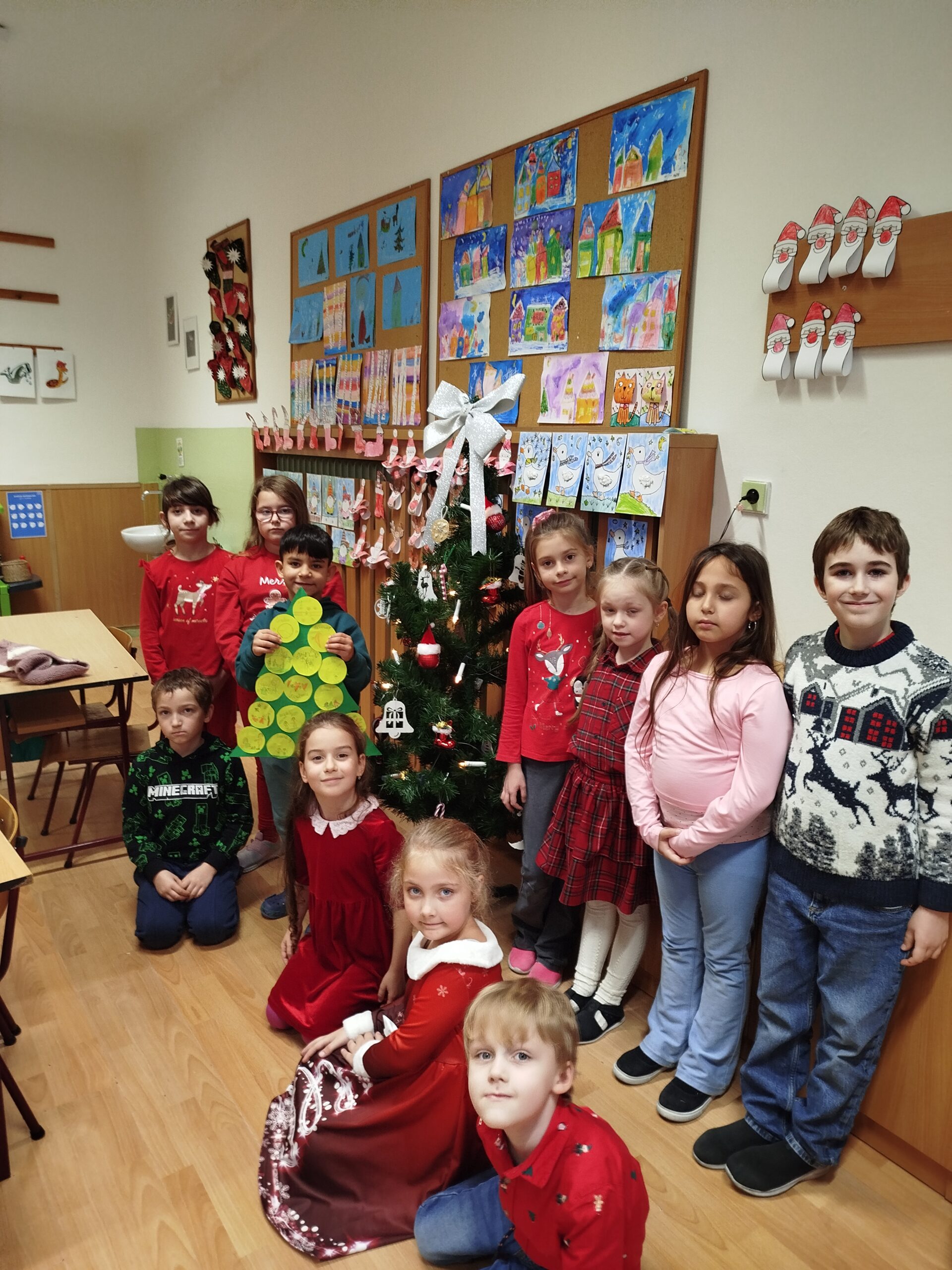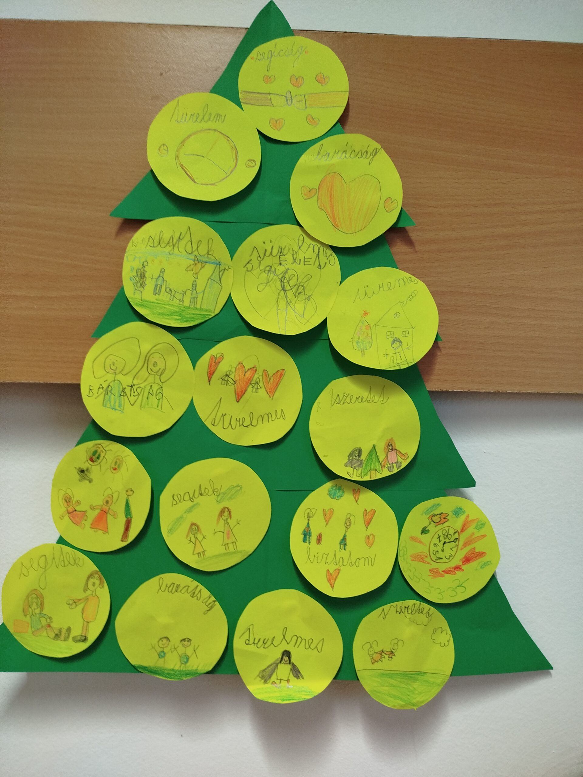 A gyerekek karácsonyfadíszre rajzolták, írták a megvalósított jótetteiket.