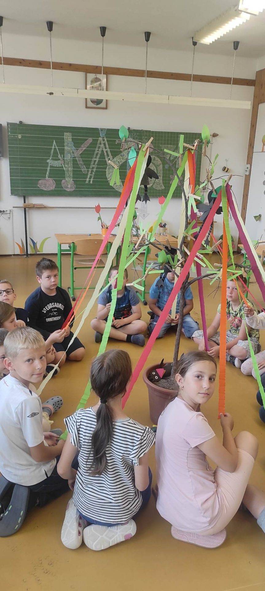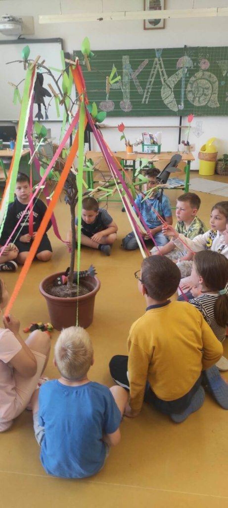 Végre elérkezett ez a hónap is. A bölcs fánk az álmok, a kívánságok tükrében öltözött fel, a színek, a formák a mi sokszínűségünket mutatják. Ezeket a gondolatokat a nyárra, a jövőre fogalmaztuk meg. A boldogságórák üzenetéért ezúton szeretnénk hálánkat kifejezni. Köszönjük szépen!
