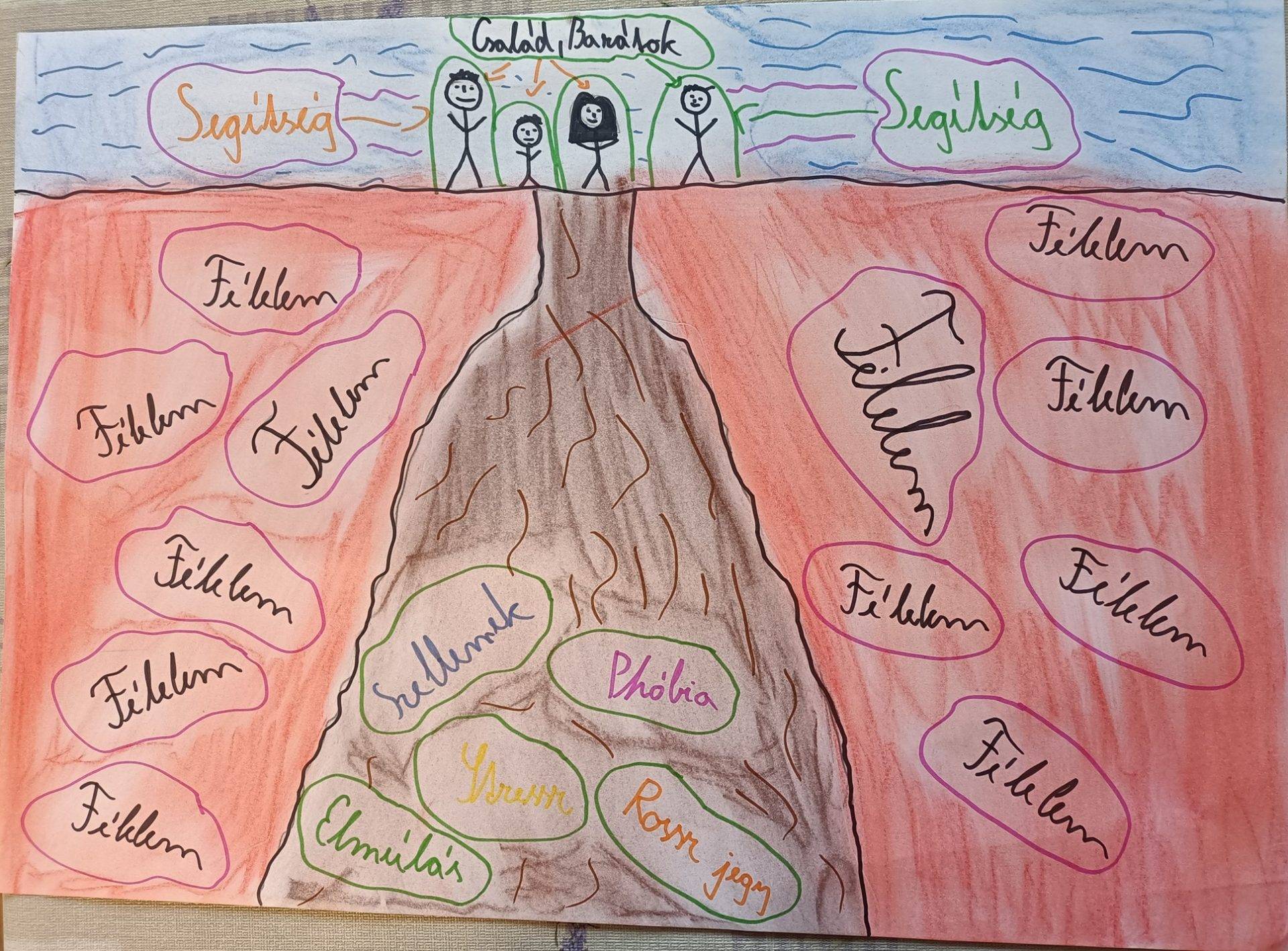 – második lépésként gondolataikat képekben rögzítik: rajzlapra készítik el saját „okok és megoldások térképét”