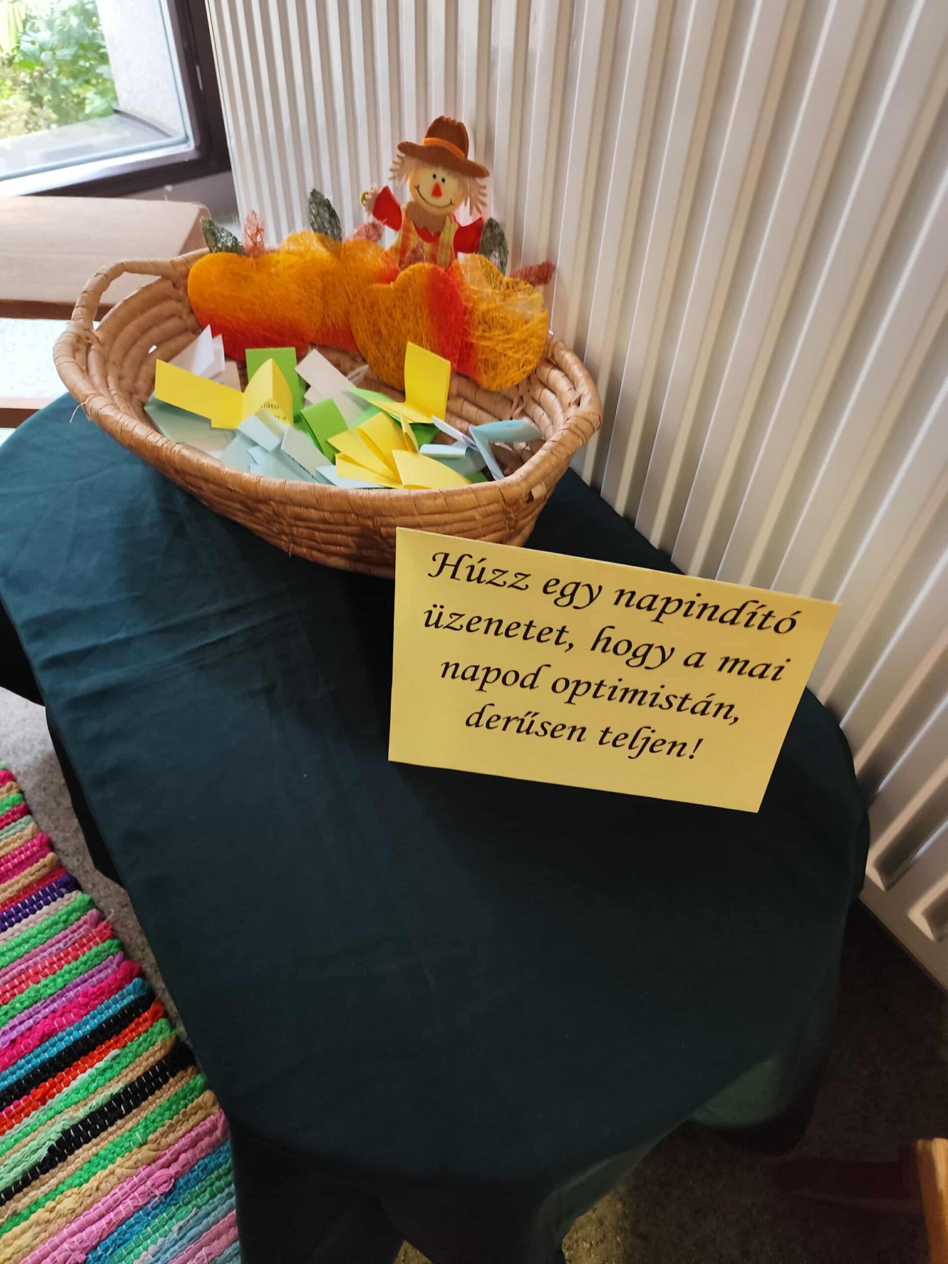 Az iskola aulájában ebben a hónapban „Boldogság sarkot” alakítottunk ki, ahol optimizmusra hangoló idézeteket helyeztünk el. Bár az elsősök még írni, olvasni nem tudnak, vidám smileyk-kal segítettek kidekorálni a helyszínt. Minden reggel diákok és pedagógusok is húzhattak egyet, hogy pozitív gondolatokkal induljon a napjuk. Az idézetekből az elsősök is húztak, vagy valamelyik nagyobb iskolatársuk, vagy felnőtt felolvasta nekik, amit lelkesen, kíváncsian hallgattak. A kezdeményezés nagy sikert aratott, sokan rendszeresen visszatértek, hogy újabb inspiráló idézeteket olvassanak. A Boldogság sarkot megtartjuk, aktualizáljuk. 😊