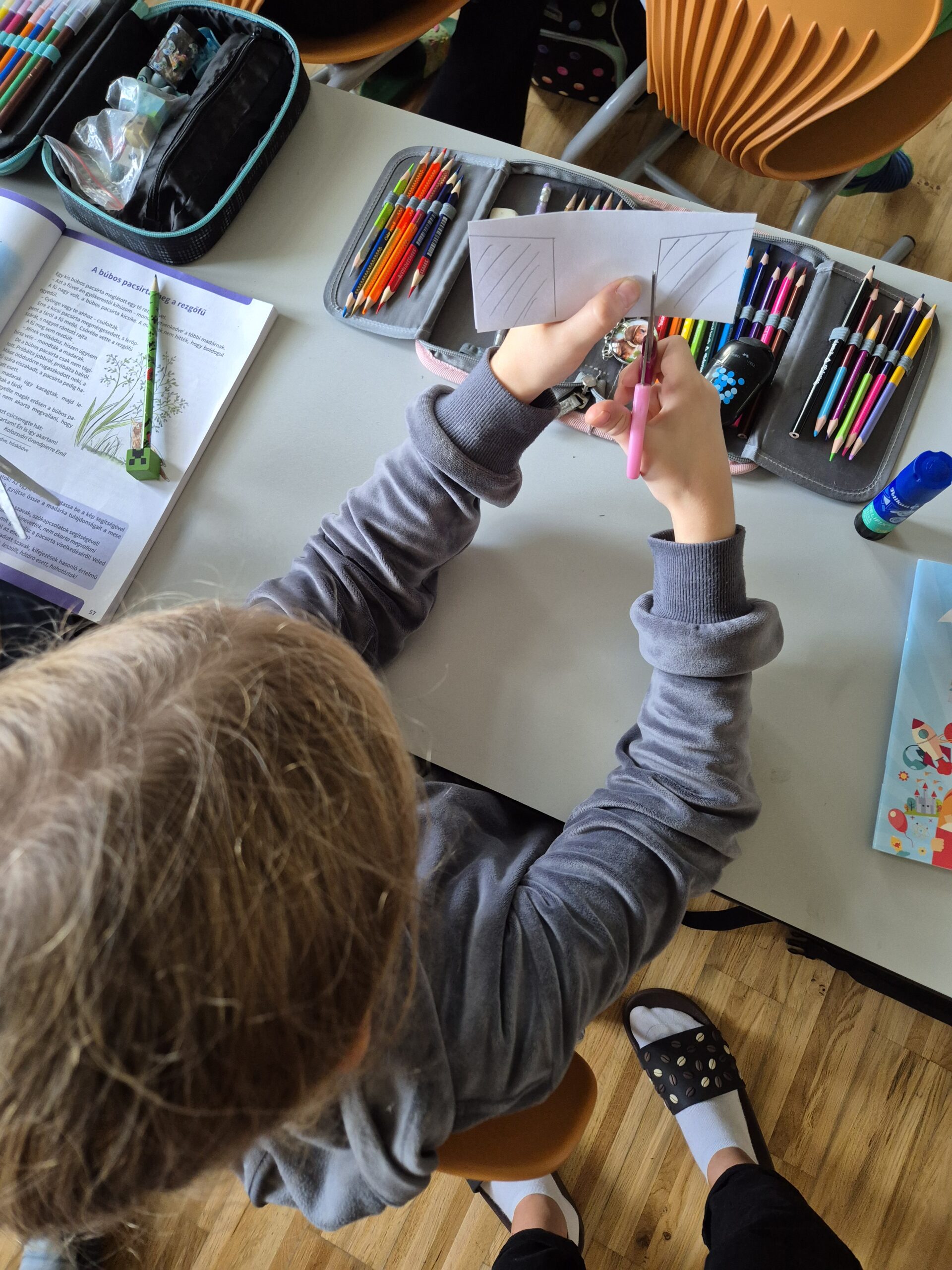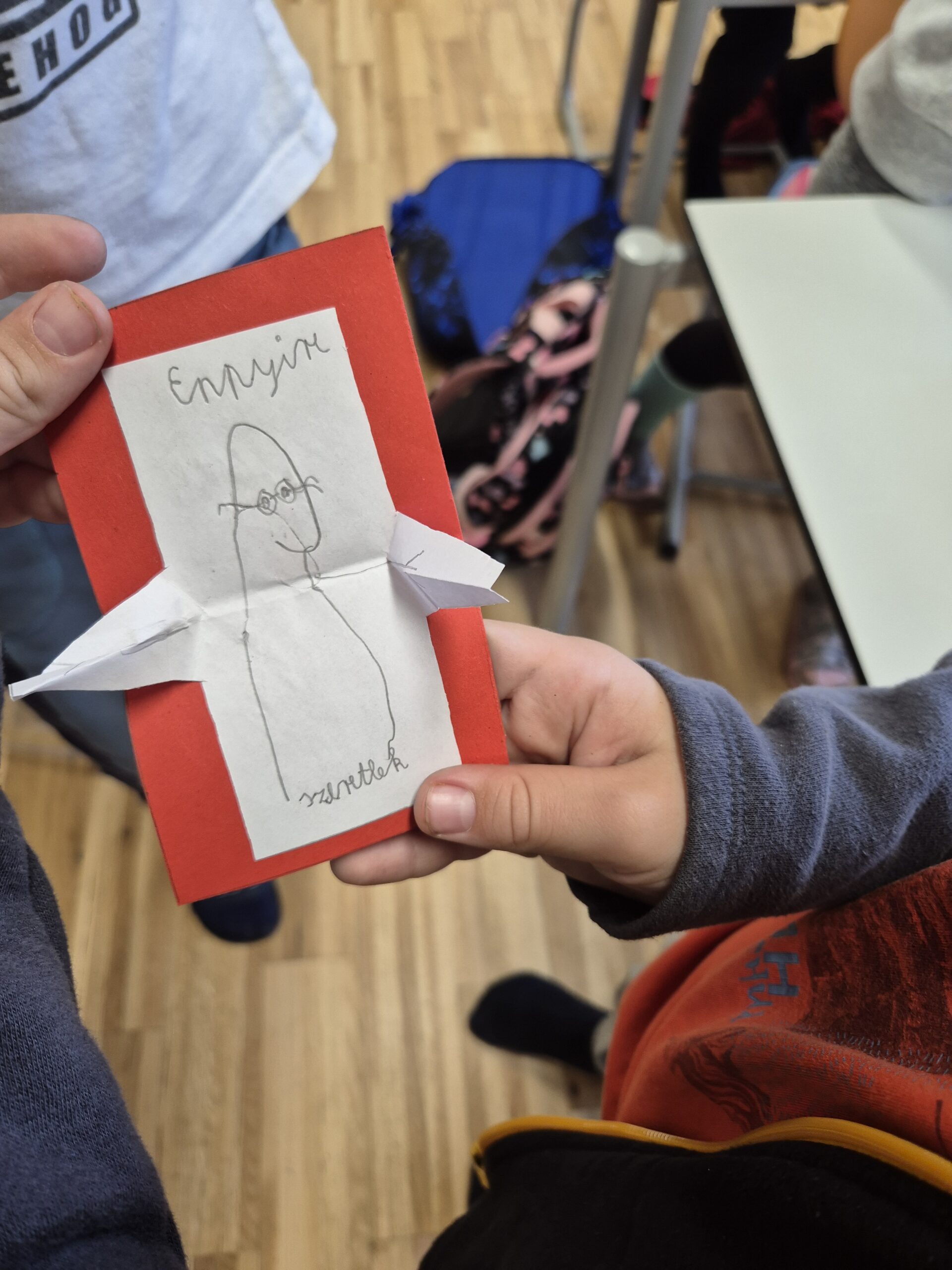 Az őszi szünet előtt a boldogságóra keretein belül beszélgettünk a szeretetről, annak kifejezési lehetőségeiről. Önmagunk, társaink, családtagjaink szeretetéről, társas kapcsolatokról. Az ölelés világnapja alkalmából mindenki választott magának 1 vagy több embert, akit megölelt. Végül készítettünk egy ölelőkártyát, melyet a későbbiekben átadtak valamelyik szerettüknek.