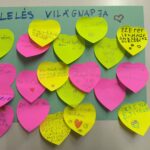 Közösen készítettünk egy „szívfalat”, amelyre sok-sok pozitív üzenetet és bátorító gondolatot írtunk.